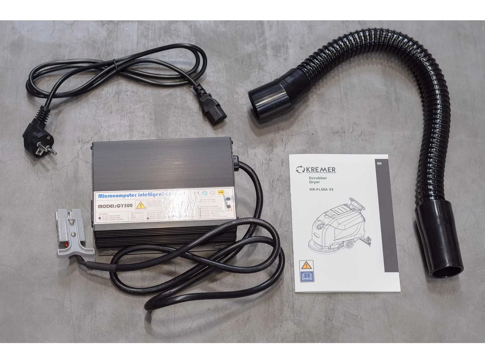 Zuigkracht 500w; borstelmotor 500w; borstel snelheid 175 rpm; tankinhoud 50+50 ltr; 2000 m3/h; met acculader; ongebruikt in doos; 2423; Merk: Kremer Type: KR-FL50A Bouwjaar: 2021 Werkbreedte: 510mm Kilometerstand bij opname: 0hr Elektrisch: true Aansluiting: 24V Accu lader: true Oplaadbaar: true Eigen gewicht: 160kg Totale afmeting L: 1200mm Totale afmeting Breedte: 600mm Totale afmeting Hoogte: 1030mm