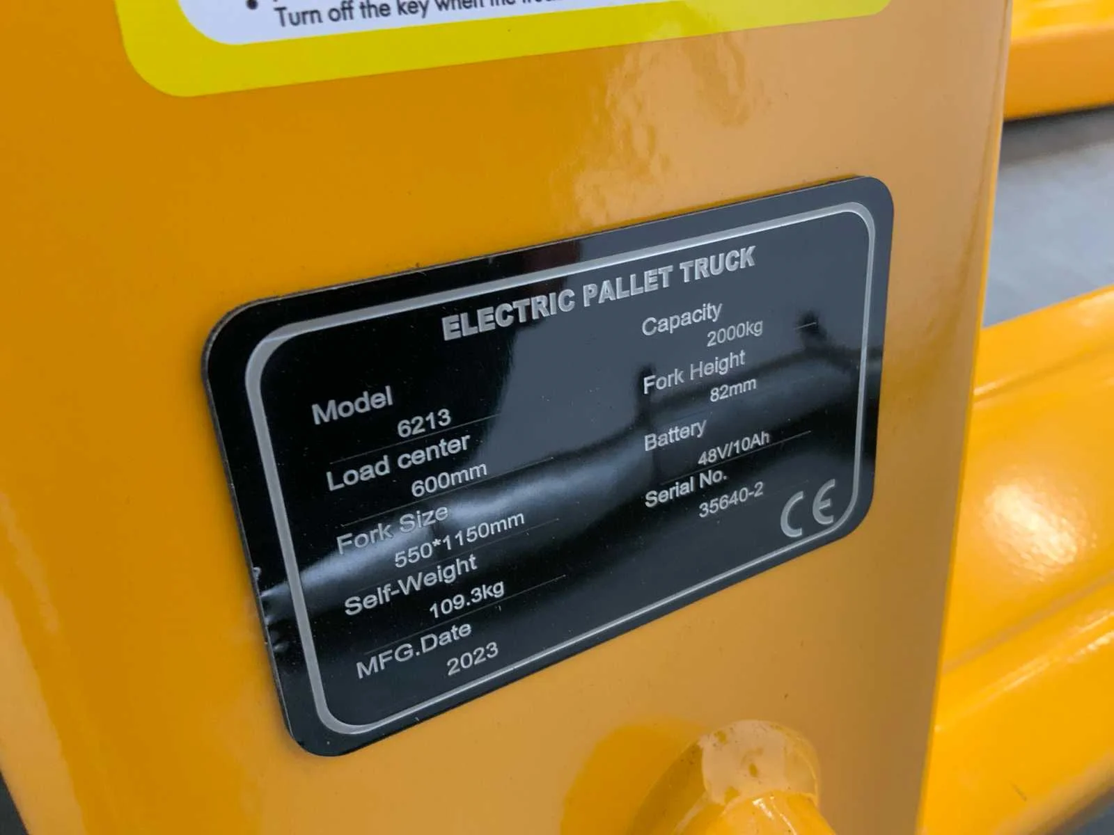 48v/10Ah; met lader 230v; noodstop; uitneembare accu; batterij indicator; 6213 Merk: RTE Type: 6213 Bouwjaar: 2023 Hefvermogen: 2000kg Lepellengte: 1150mm Accu lader: true Eigen gewicht: 110kg Totale afmeting L: 1600mm Totale afmeting Breedte: 550mm Totale afmeting Hoogte: 1300mm