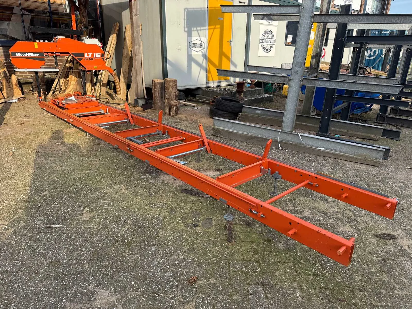 Lintzaagmachine met elektromotor. Machine heeft bouwjaar 2019 en in 2024 voor het eerst in gebruik genomen. Enkel gebruikt als Demo; Maximale zaaglengte 6,10 meter en wordt geleverd met 2 extra lengte delen ( niet op foto ); Voorzien van extra 90 graden aanslagen, klem eenheden en uitricht gereedschap; voorzien van originele woodmizer Cookie mizer voor het zagen van schijven bouwjaar 2024; Wordt door verkoper gedemonteerd/klaargezet op pallets en er is een heftruck aanwezig om te laden. Merk: Woodmizer Type: LT15 Bouwjaar: 2019 Zaagblad afm. l: 4100mm Aansluiting: 400V