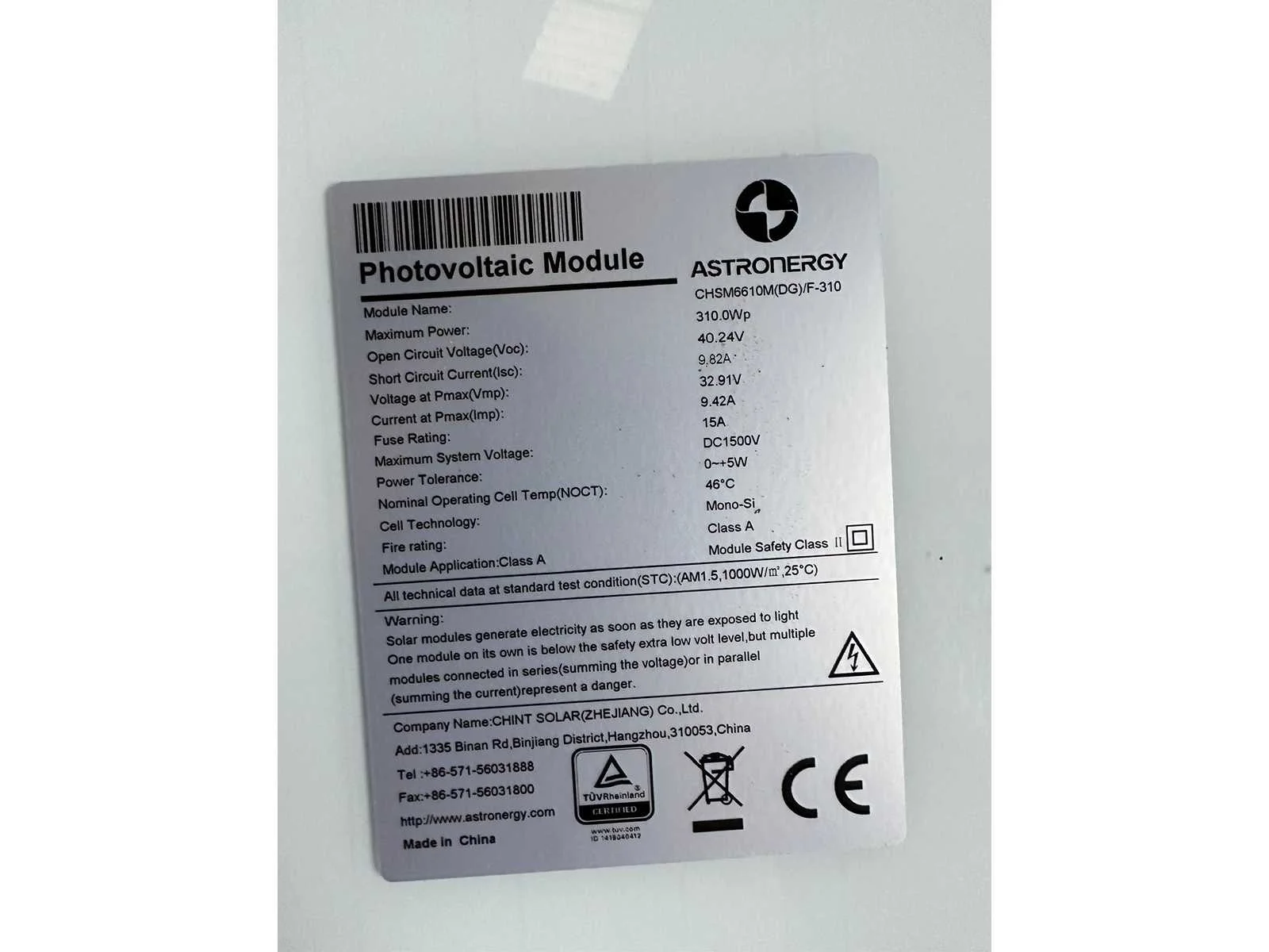 Set zonnepalen Astronergy 16 stuks a 310wp 4960 wp totaal ongebruikt maat 1670 mm x 1000 x 35 mm inclusief Solis omvormer 5K 1 fase ongebruikt Merk: Solis Type: Astronergy Vermogen: 4,96kW