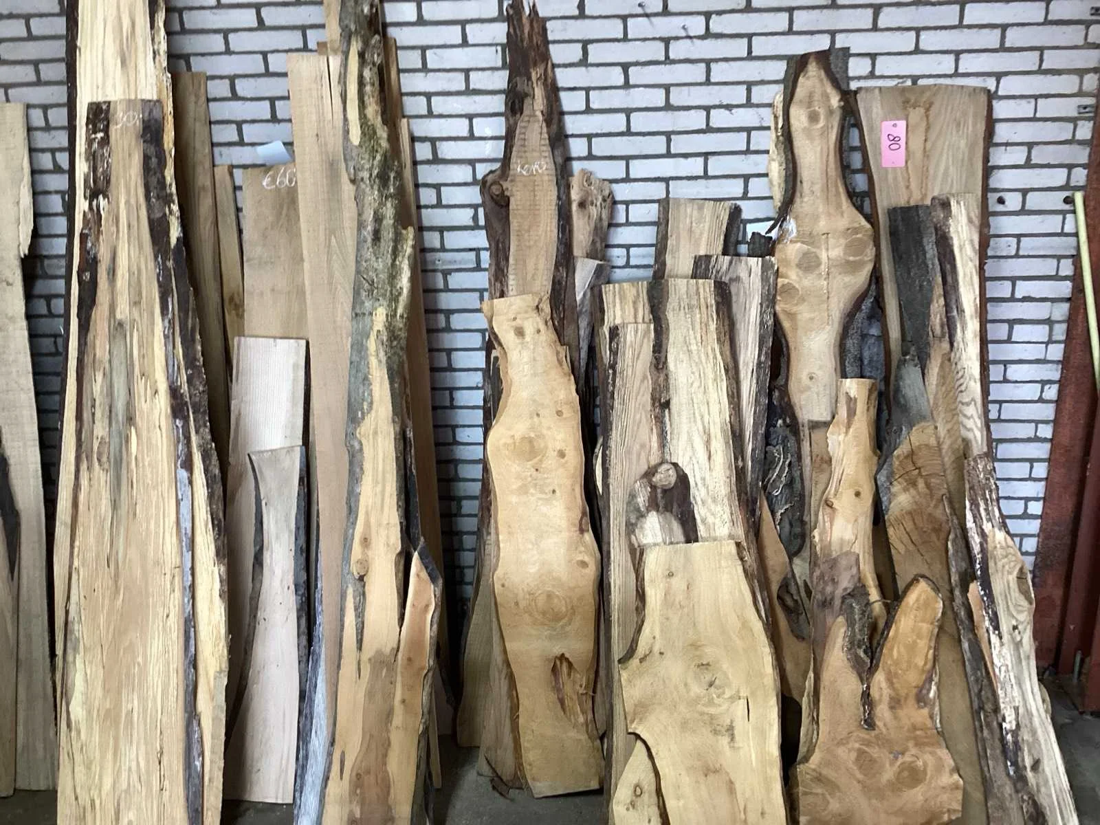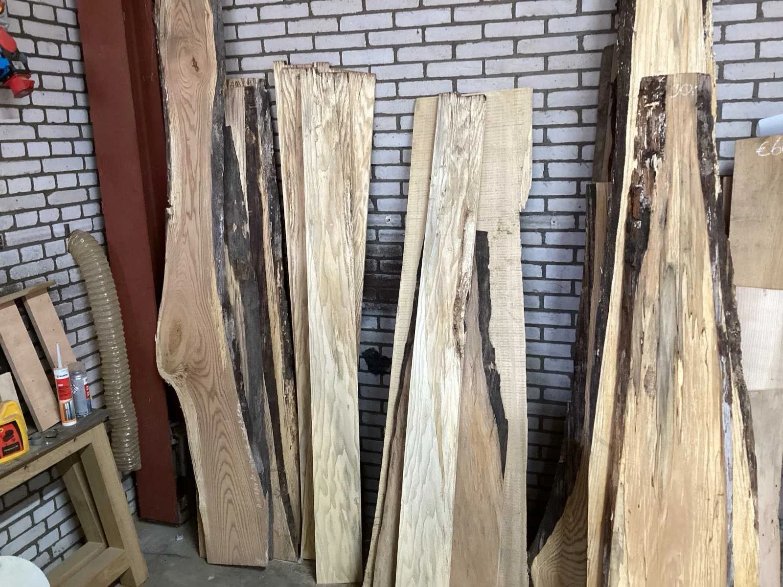 Herkomst Nederland; breedte 500-180 millimeter ; diverse inlandse houtsoorten zoals: Amerikaans eiken, plataan, taxus, Europees eiken, beuken, essen, kers, beuken ; veel voorkomende dikte 25 millimeter; hoek leeg opleveren Type: Beuken,Essen Amerikaans eiken Lengte: 3100mm Breedte: 3800mm