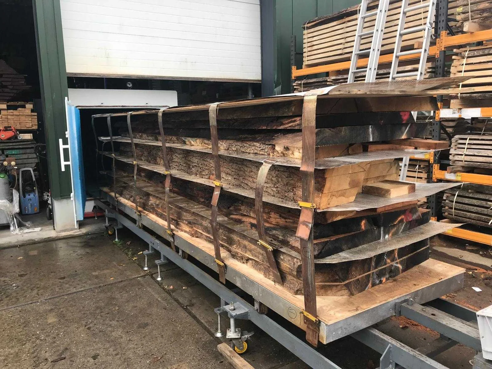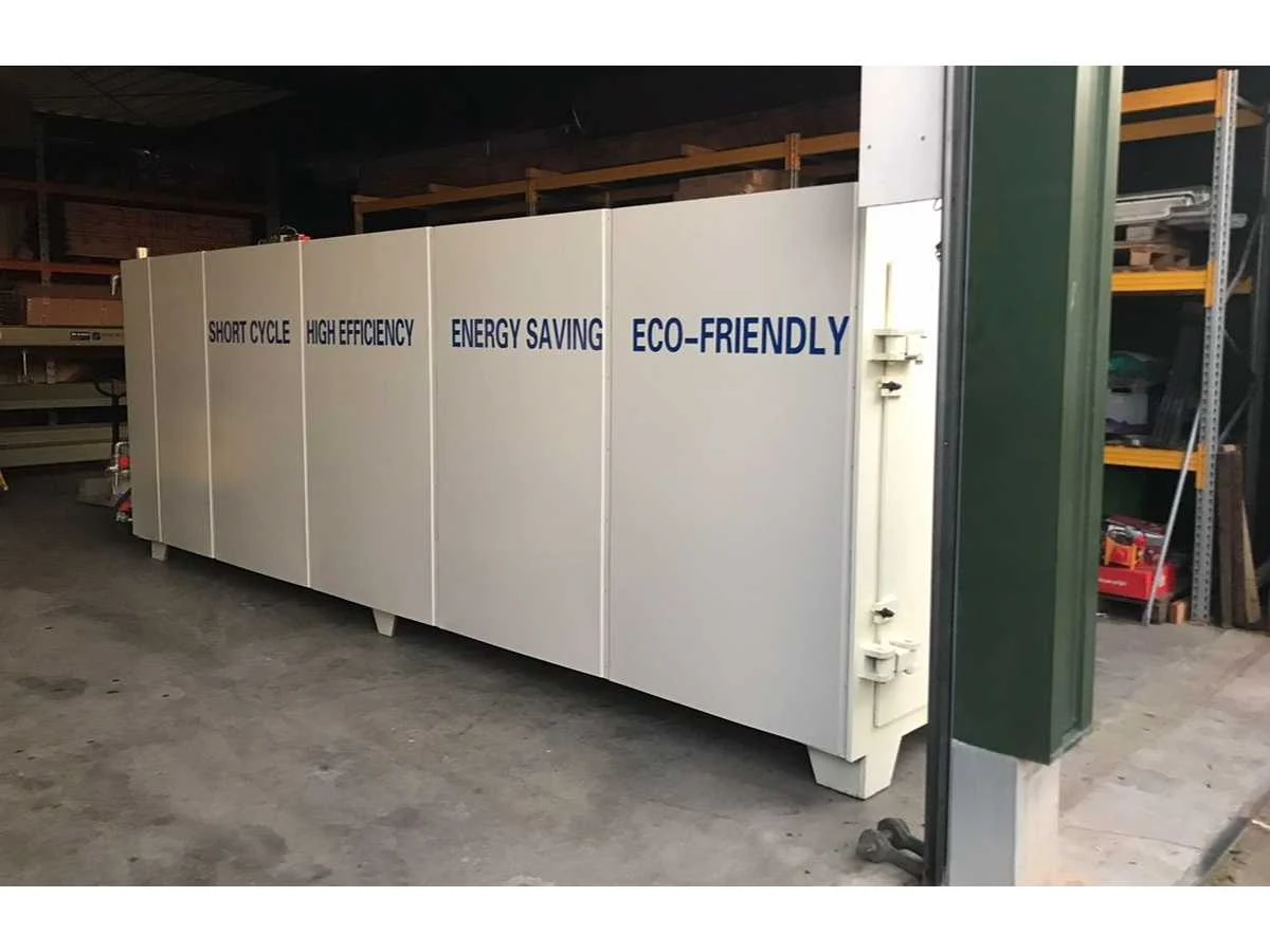 Vacuum droogkamer met een capaciteit van 5m lang. Voorzien van hydraulische klem eenheid vanaf boven naar beneden om het hout vlak te houden. inclusief alle toebehoren. Is geleverd in 2018 en in 2019 verhuisd naar een locatie waar helaas te weinig stroom aanwezig was dus heeft niet meer gedraaid. Staat al enkele jaren stil, rolwagen buiten opgeslagen, droogkamer en HF Unit droog binnen. Wordt bij verkoop buiten klaargezet zodat een laadkraan deze op kan tillen. Kan vers hout zoals esdoorn of populier in 1,5 week naar een vochtpercentage onder de 10 procent brengen. Werkt met vacuum en een microgolf signaal door het hout, zonder lucht in de kamer. Zie Canadian Woodworks op youtube voor filpmjes. Vuren en lariks kan binnen een week naar ovengedroogd. Merk: HX Vhaibo DX Bouwjaar: 2018 Tafel afmeting l: 6000mm Tafel afmeting b: 2200mm Aansluiting: 400V Machinegewicht: 5500kg