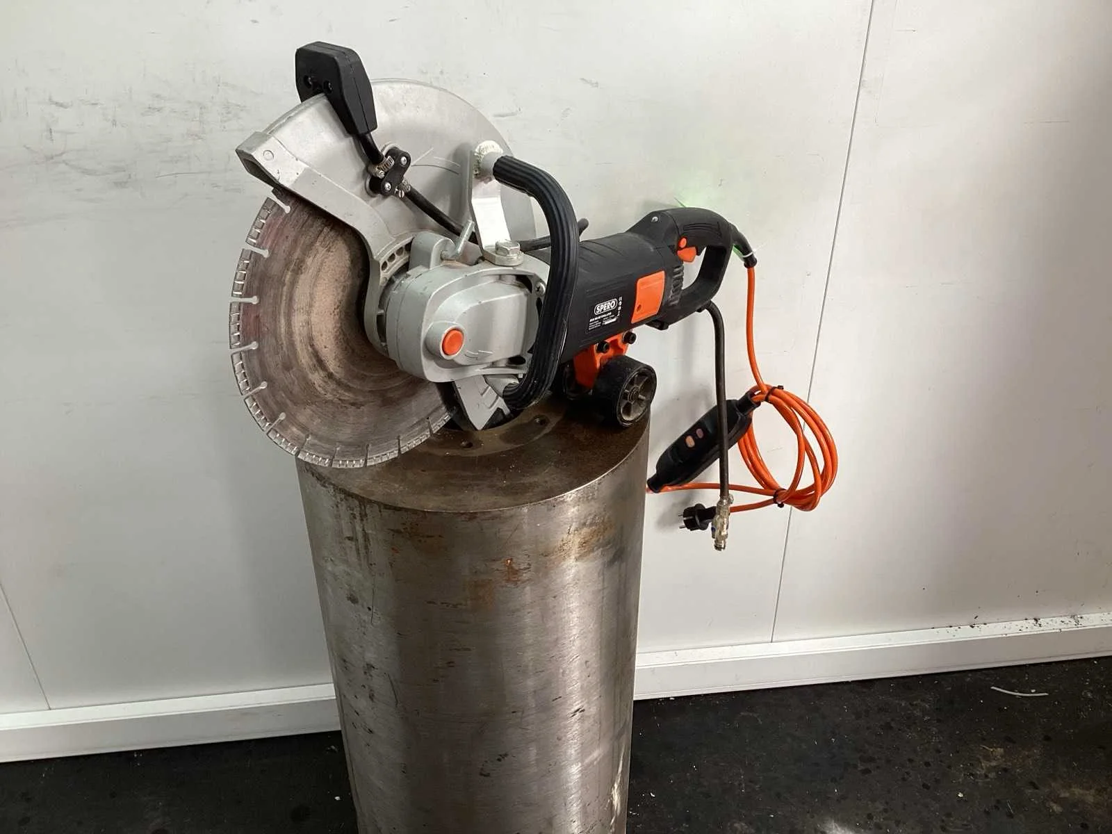 Diamantzaag, geschikt voor droog en nat gebruik. inclusief prcd schakelaar en zaagblad. Merk: Spero Model: SPHS355