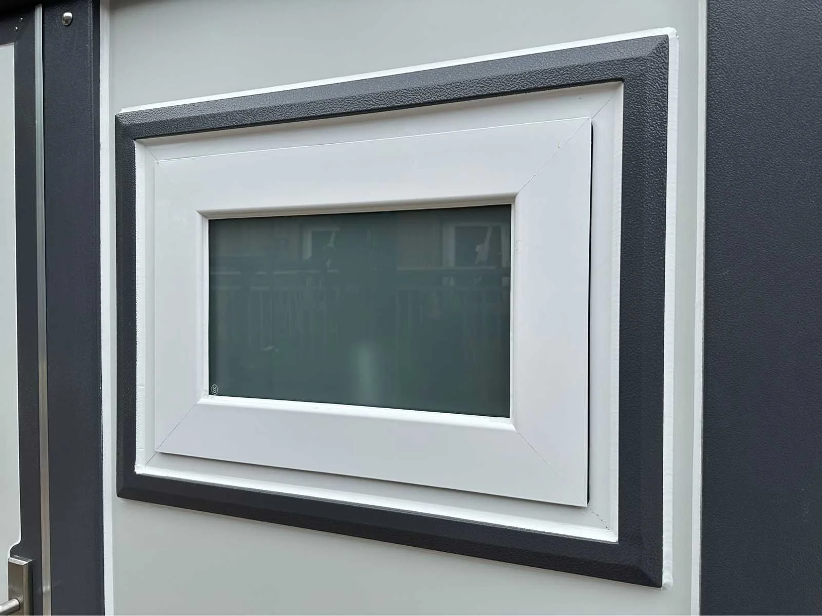 V.V. douche; wastafel met spiegelkast; 230 Volt aansluiting; ventilatiesysteem; plafondverlichting; afsluitbaar met sleutel en knopcilinder; lepelgaten en hijsogen; ongebruikt Merk: Stahlworks Type: Deluxe Bouwjaar: 2025 Aantal ramen: 1 Aantal wastafels: 1 Aantal douches: 1