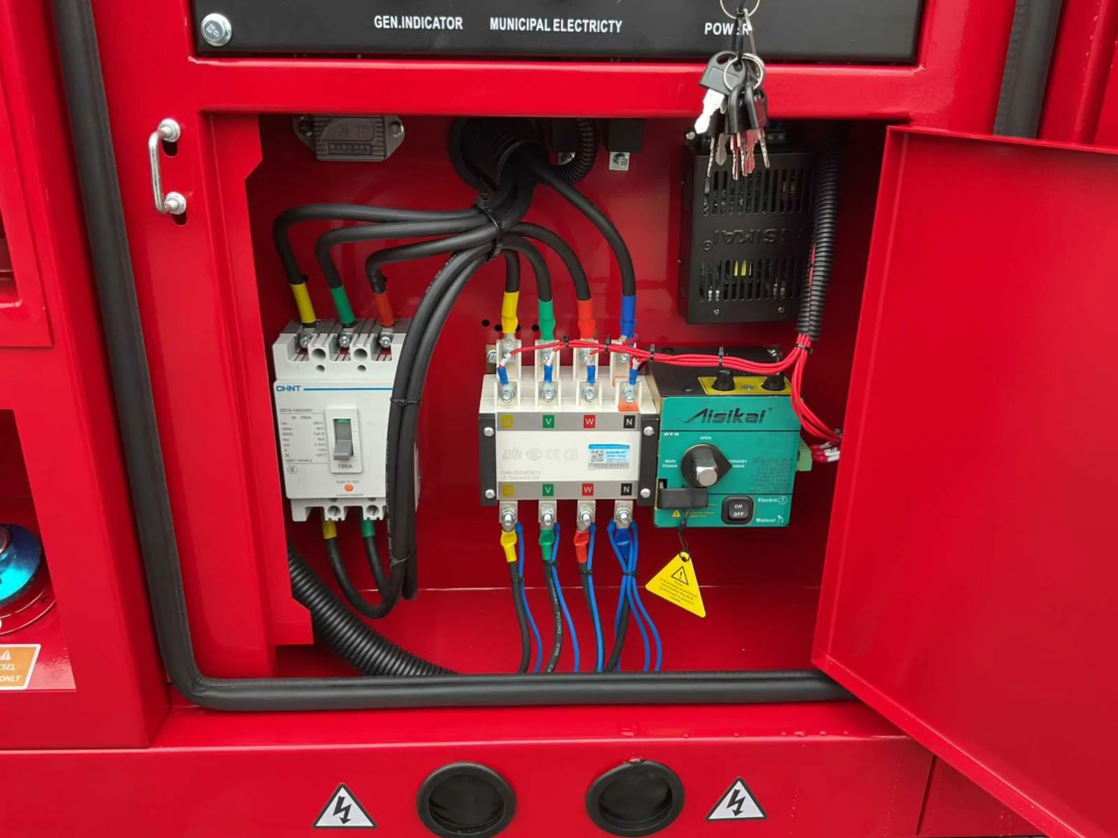 Fix with CEE sockets and ATS 100A; inclusief toebehoren; ongebruikt (let op af te halen vanaf circa 16 mei) Merk: Rhino-cross Type: VE-80 Bouwjaar: 2025 Capaciteit.: 80kVA Aansluiting: 380V Machinegewicht: 1050kg Totale afmeting L: 2300mm Totale afmeting Breedte: 950mm Totale afmeting Hoogte: 1250mm