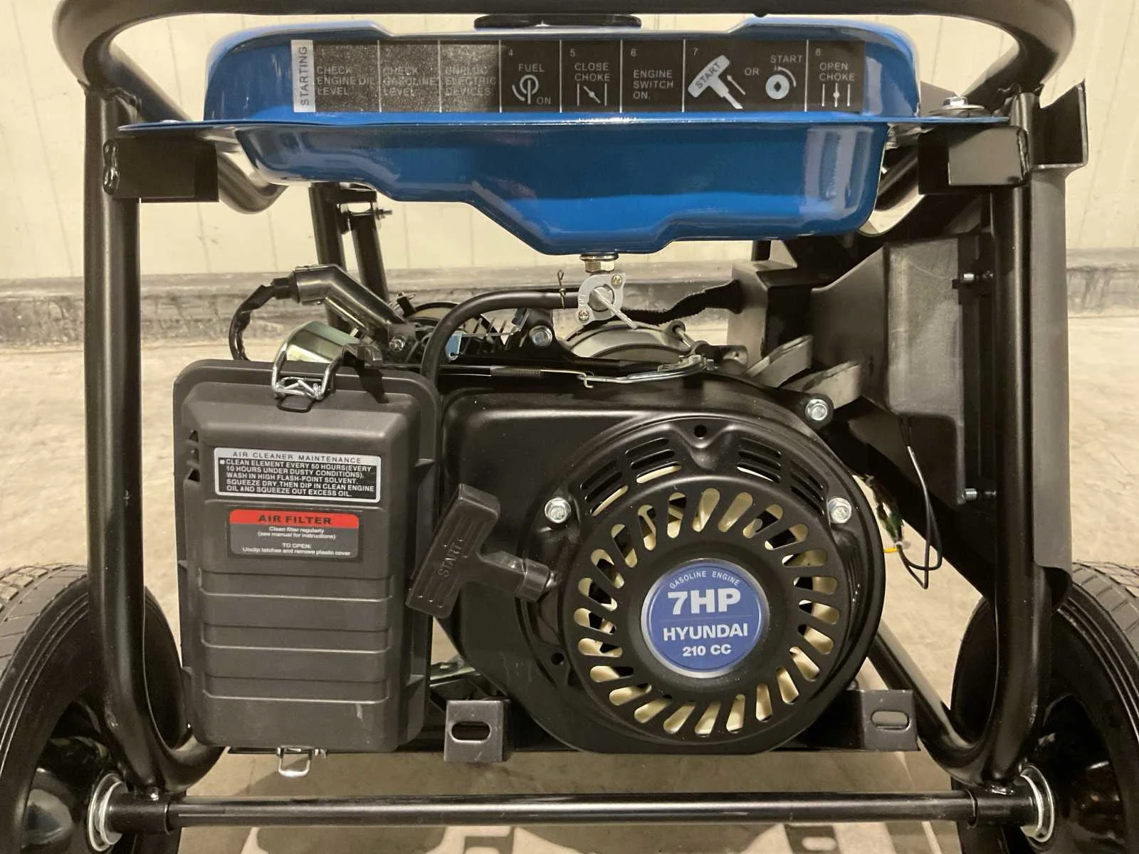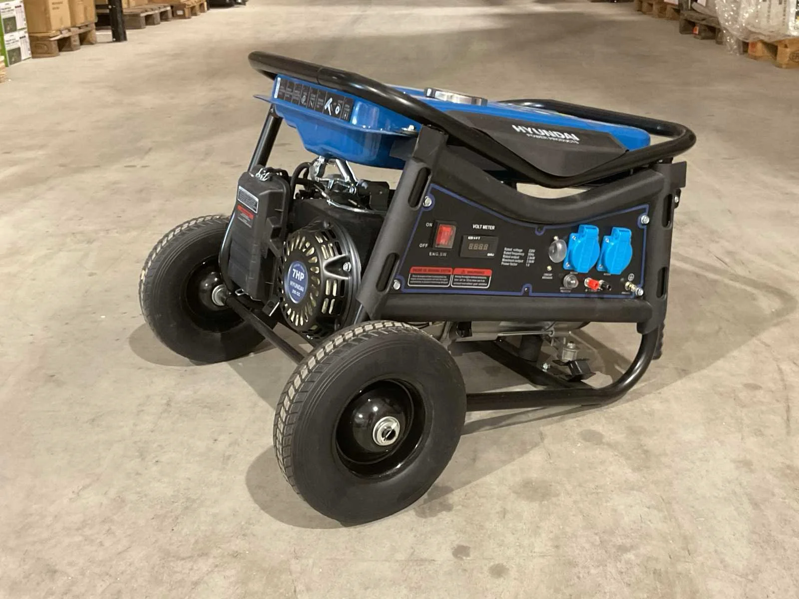 Voorzien van 210 cc OHV 4-takt luchtgekoelde motor; 15ltr tank euro 95; oliereservoir 600ml; 2x230V 16AAC output; 1x12V 8,3A DC outputAVR binnen een marge van +/- 3% van 230V; olie-alarm met automatisch uitschakel functie; Ongebruikt in doos. Merk: Hyundai Type: Benzine generator 55059FF / LB3500-YB Bouwjaar: 2025 Capaciteit.: 3kVA Benzine: true Type motor: Hyundai OHV 4-takt luchtgekoelde motor Aantal cilinders: 1 Motorvermogen (kW): 2.8kW Luchtgekoeld: true Mobiel: true Handboek aanwezig: true Machinegewicht: 42kg Totale afmeting L: 6100mm Totale afmeting Breedte: 4800mm Totale afmeting Hoogte: 4480mm