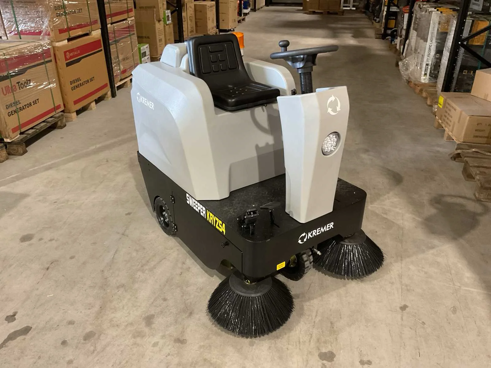 Voorzien van 2 reserve borstels; Afmetingen (LxBxH) 160 x 116 x 130 cm; Accu 48 V; Veegbreedte 1250 mm; Breedte zijborstels 2*400 mm; Loopmotor 700 W; Accucapaciteit 48 v/ 65 ah * 4 stuks; Totaalgewicht 396 kg; Breedte hoofdborstel 500 mm; Werkefficiëntie 6380 m2/h; Vuilcontainerinhoud 80L; Rolborstelmotor 700W; Loopsnelheid 0-10 Km/h; Ongebruikt Merk: Kremer Type: Sweeper KRYZ54 Bouwjaar: 2025 Werkbreedte: 1250mm Elektrisch: true Aansluiting: 48V Eigen gewicht: 396kg Totale afmeting L: 160mm Totale afmeting Breedte: 116mm Totale afmeting Hoogte: 130mm
