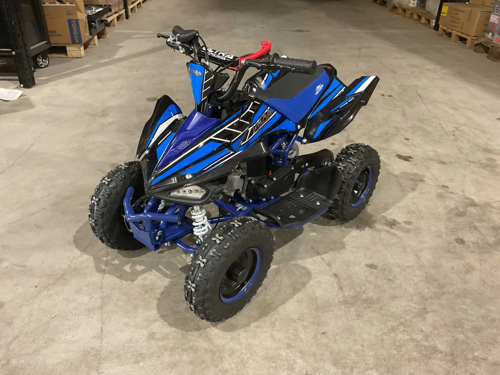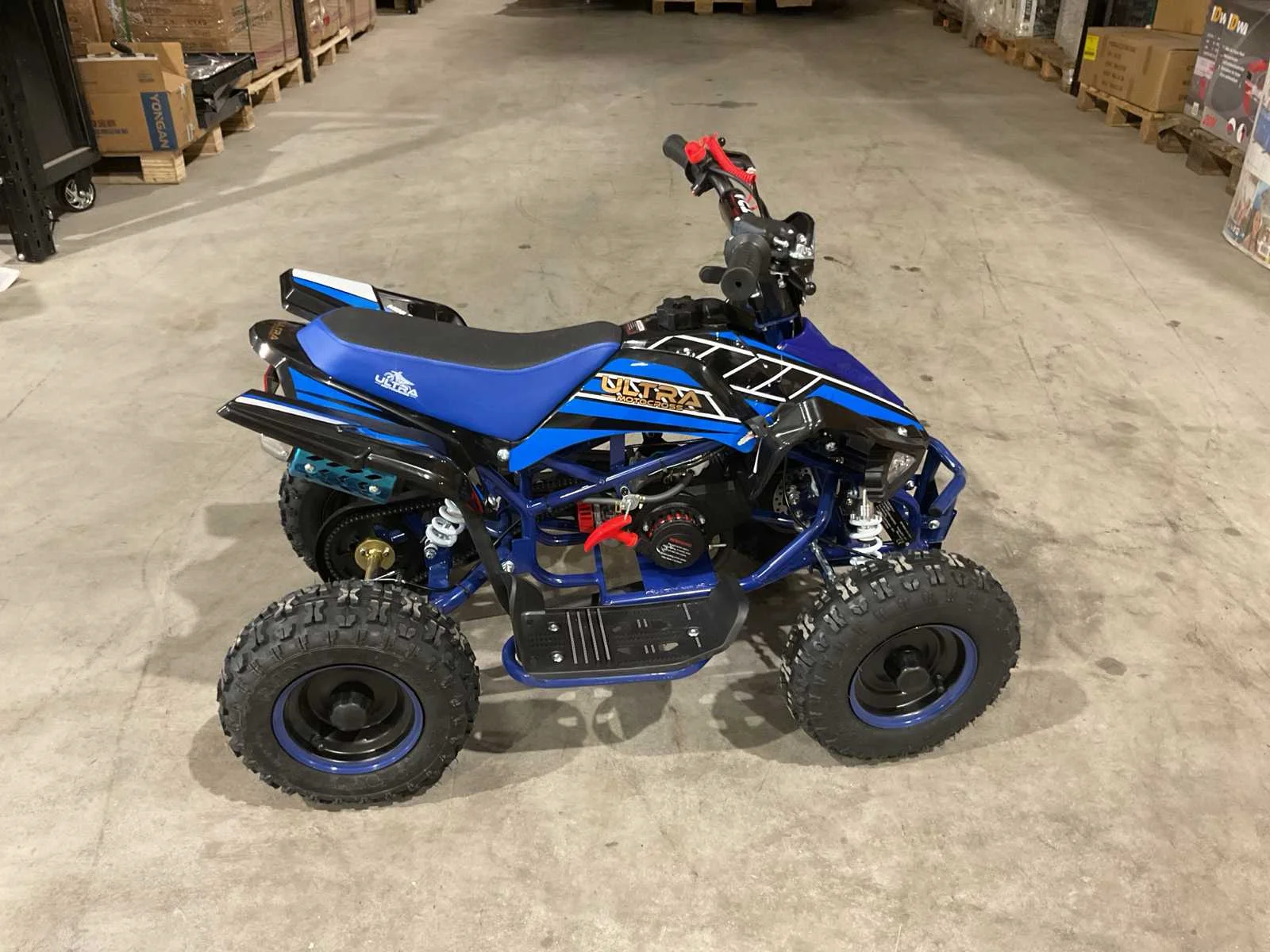 Voorzien van 49cc benzine motor; 2 takt; trek start; 3 verschillende snelheden; kill-switch; bandenmaat 6” inch; 2 sleutels; ongebruikt in doos (transport afmetingen 100x55x45 cm 36kg) Merk: Ultra Motocross Model: MA03 Product type: ATX 49 BL Gewicht: 34kg Aantal sleutels: 2 Transmissie: Automaat Bouwjaar: 2025 Cilinderinhoud: 49cc Brandstof: Benzine 2 Takt Kleur: Blauw