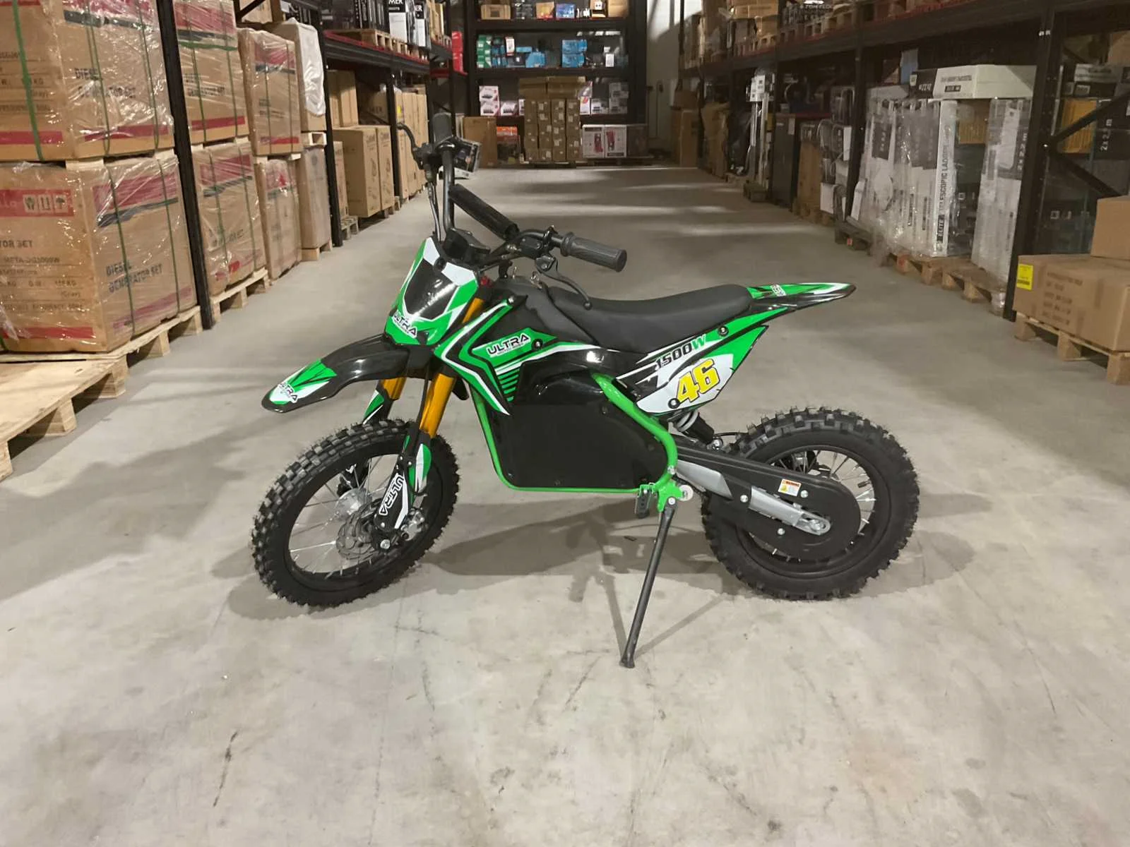 Voorzien van 1500W 60V brushless elektrische motor; hydraulische schijfremmen; ouderen sleutel; bandenmaat voor 15” inch achter 12” inch; ongebruikt in doos (transport afmetingen 130x40x65 cm Gewicht 50kg) Merk: Ultra Motocross Model: DB003E Type: ILX1500 GR Gewicht: 41kg Kleur: Groen Transmissie: Automaat Aantal sleutels: 2 Bouwjaar: 2025