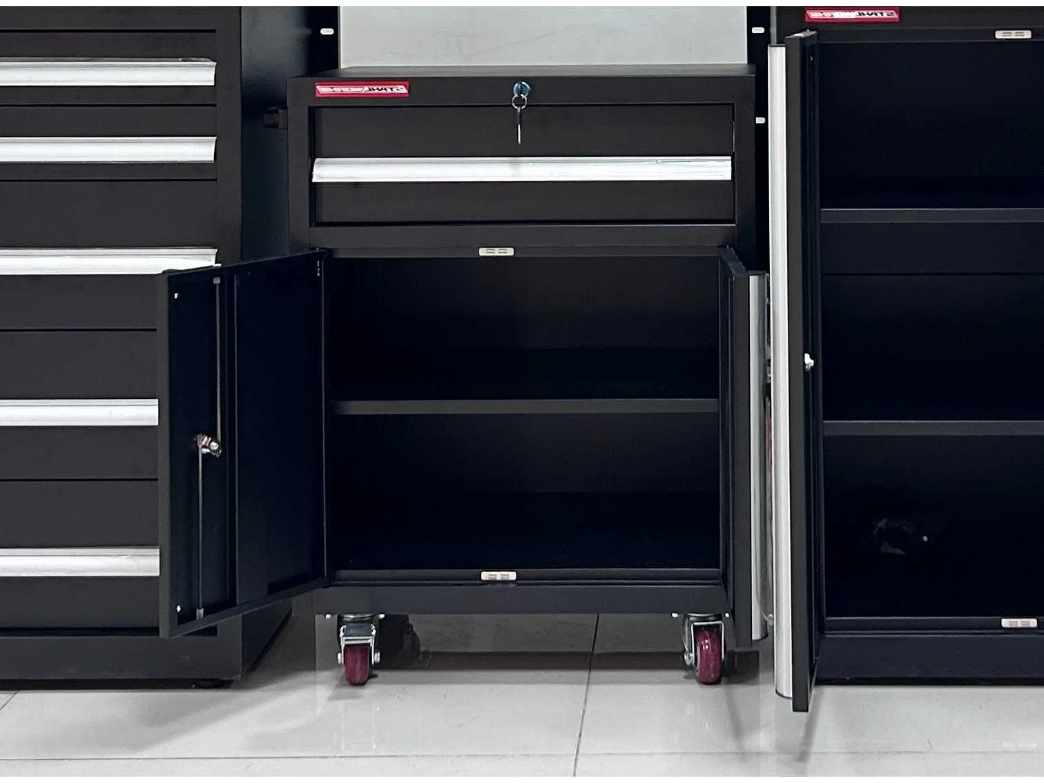 Voorzien van poeder coating; 30 mm houten werkblad; kleur zwart; ongebruikt in dozen (transport afmeting 1,75 m3) Merk: Stahlworks Model: OS-26 Product type: 300x55x203 cm Materiaal: SPCC steel