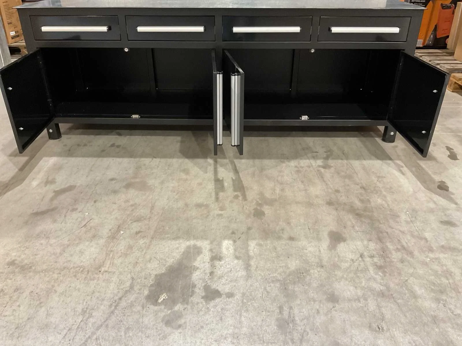 Merk: Stahlworks Model: 4 laden, 4 kastdeuren / In hoogte verstelbaar Product type: Zwarte Breedte: 655mm Lengte: 2210mm Hoogte: 855mm
