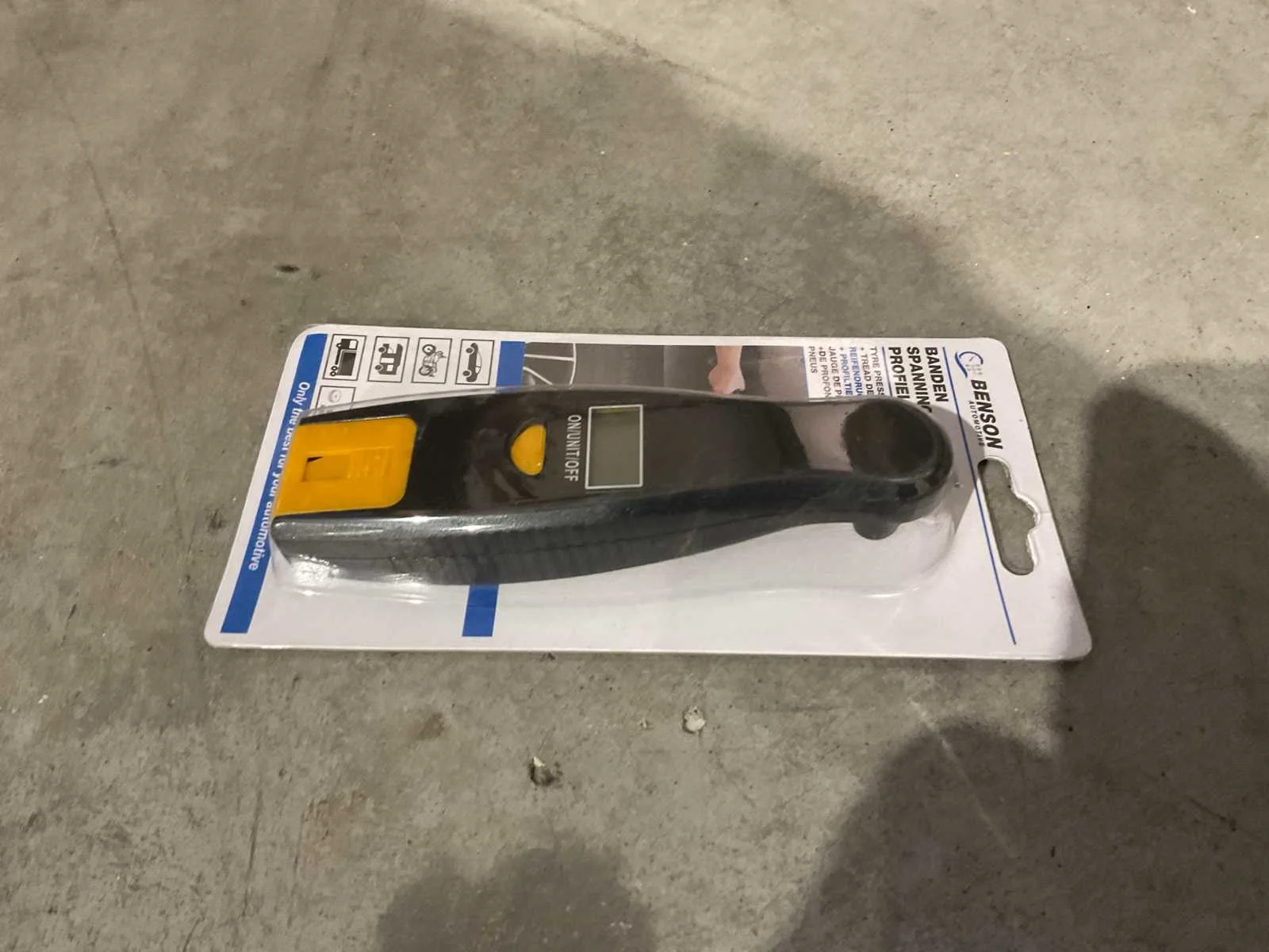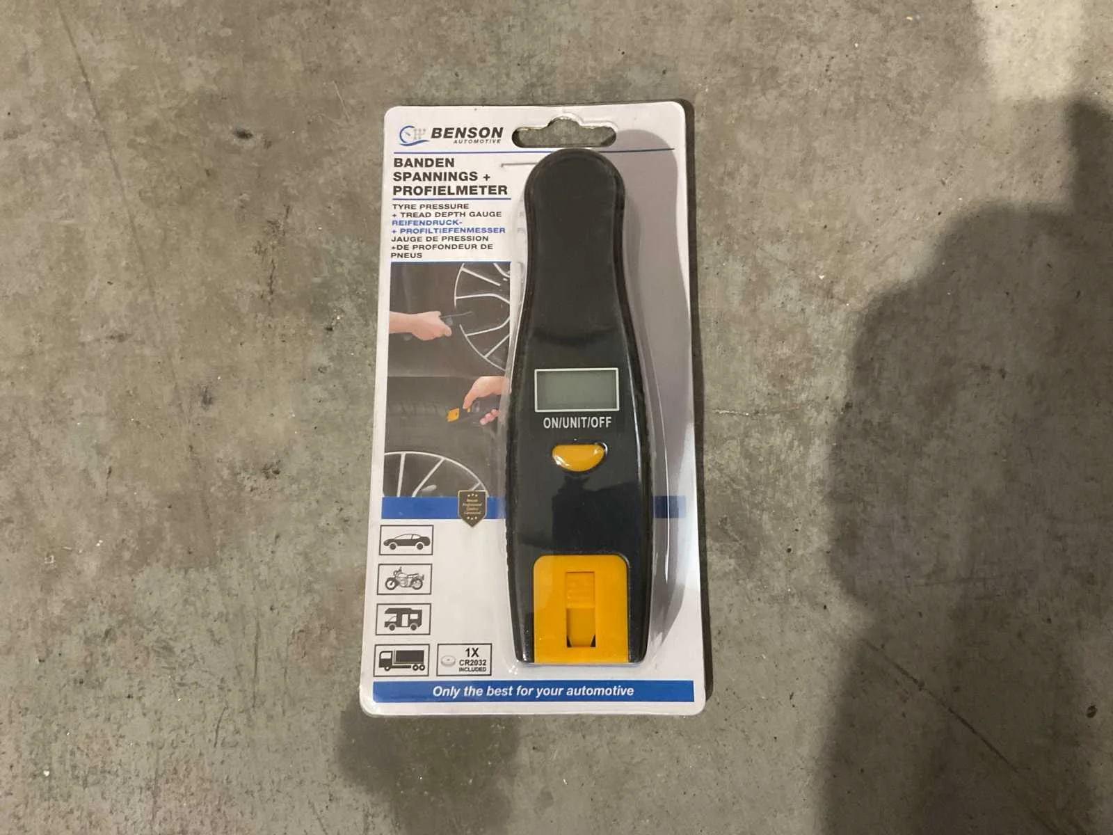Voorzien van Werkbereik: 0-150psi, 0-10 bar, 0-1000 kpa, 0-10 kg/cm; 0,1 nauwkeurigheid +/- 1%; Batterij: CR2032 (meegeleverd); luchtdruk en profieldiepte beschikbaar in bar, psi, kpa en kg/cm; Ongebruikt in doos Merk: Benson Automotive Type: 012128 Banden spannings + profielmeter Bouwjaar: 2025 Eigen gewicht: 5kg Totale afmeting L: 52mm Totale afmeting Breedte: 22mm Totale afmeting Hoogte: 24mm