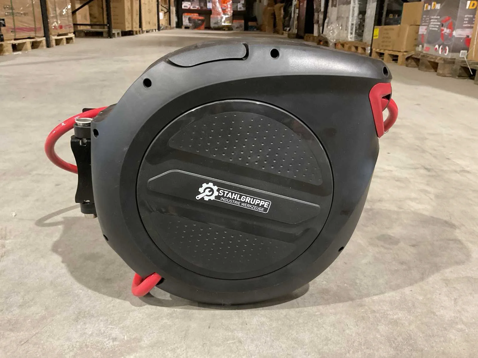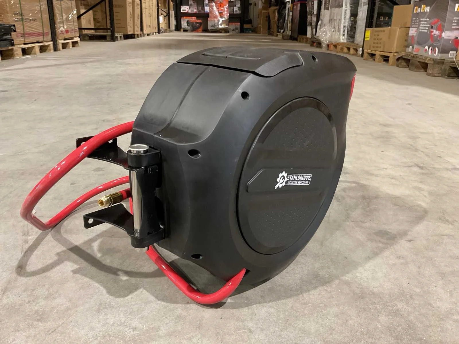 Voorzien van 20m slang; 2m aansluit slang; 9.5 mm diameter slang; 17 bar max werkdruk; verstelbare stop bal; automatische oprollend systeem; inclusief muur bevestiging; ongebruikt in doos Merk: Stahlgruppe Type: 20M Bouwjaar: 2025 Gewicht: 7kg Lengte: 45cm Breedte: 25cm Hoogte: 40cm