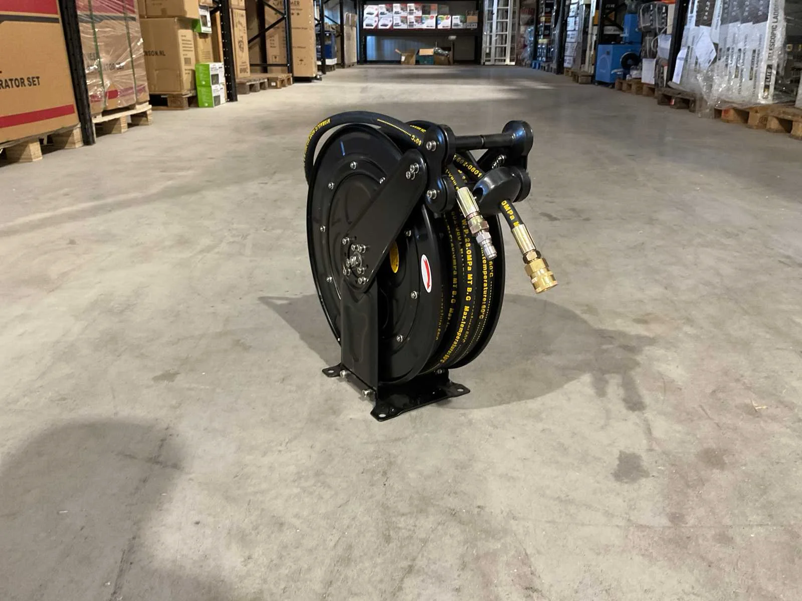 Voorzien van 20 mtr luchtslang uittrekbaar; 2 mtr lucht aanvoer slang; 280 bar werkdruk; 1/4” quick fitting; 3/8” slang; vertraagde inrol mechanisme; Ongebruikt in doos Merk: Kremer Type: 20 meter met haspel Bouwjaar: 2025