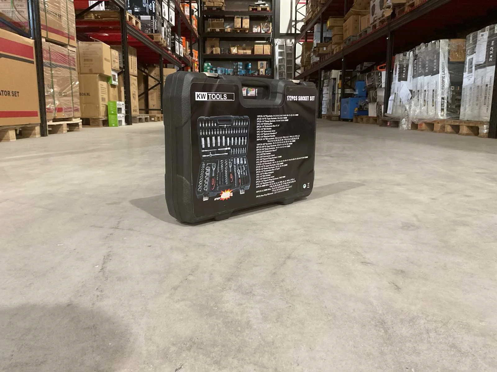 13 stuks 1/4 " Socket: 4,4,5,5,5,5,6,7,8,9,10,11,12,13,14 mm; 7 stuks 1/4 " diepe wandcontactdoos 4,5,6,7,8,9,10 mm; 5 stuks 1/4 " E-doppen E4, E5, E6, E7, E8; 2 stuks 1/4 " verlengstang 2 'en 4"; 1 stuk 1/4 " Sliding T-Bar; 1 stuk 1/4 " universele koppeling; 1 stuk 1/4 " koppeling; 1 stuk 1/4 " Quick Release ratelhendel; 30 stuks 1/4 " Bit-doppen; 10 stuks 3/8 " Doppen 10,11,12,13,14,15,16,17,18,19mm; 6 stuks 3/8 " Sockets 10,11,12,13,14,15; 5 stuks 3/8 " E-doppen E10, E11, E12, E14, E16, E18; 1 stuk 3/8 " Extention Bar 5"; 1 stuk 3/8 " koppeling ;1 stuk 3/8 " Bougie Dop 18 mm; 1 stuk 3/8 " Quick Release Ratchet Hanlde;18 stuks 1/2 " Sockets 10,11,12,13,14,15,16,17,18,19,20,21,22,23,24,27,30,32mm; 5 stuks 1/2 " diepe doppen 16,17,18,19,22 mm; 3 stuks 1/2 " E-doppen E20, E24; 2 stuks 1/2 " Extension Bar 5" & 10 "(met driewegadapter); 1 stuk 1/2 " universele verbinding; 1 stuk 1/2 " koppeling; 2 stuks 1/2 " Bougie Dop 16 mm en 21 mm; 1 stuk 1/2 " Quick Release ratelhendel; 1 stuk Inbussleutel Set 1,1.5,2,2.5,3,4,5mm; 20 stuks 25mm bits in bits houder; 24 stuks 30mm bits; 1 stuk spinnerhandvat; Ongebruikt in doos (Transport afmeting 460 x 95 x 350, Gewicht 8.68 KG) Merk: KW Tools Met koffer: true Delig: 172 Type: 172PCS Socket Set Bouwjaar: 2025