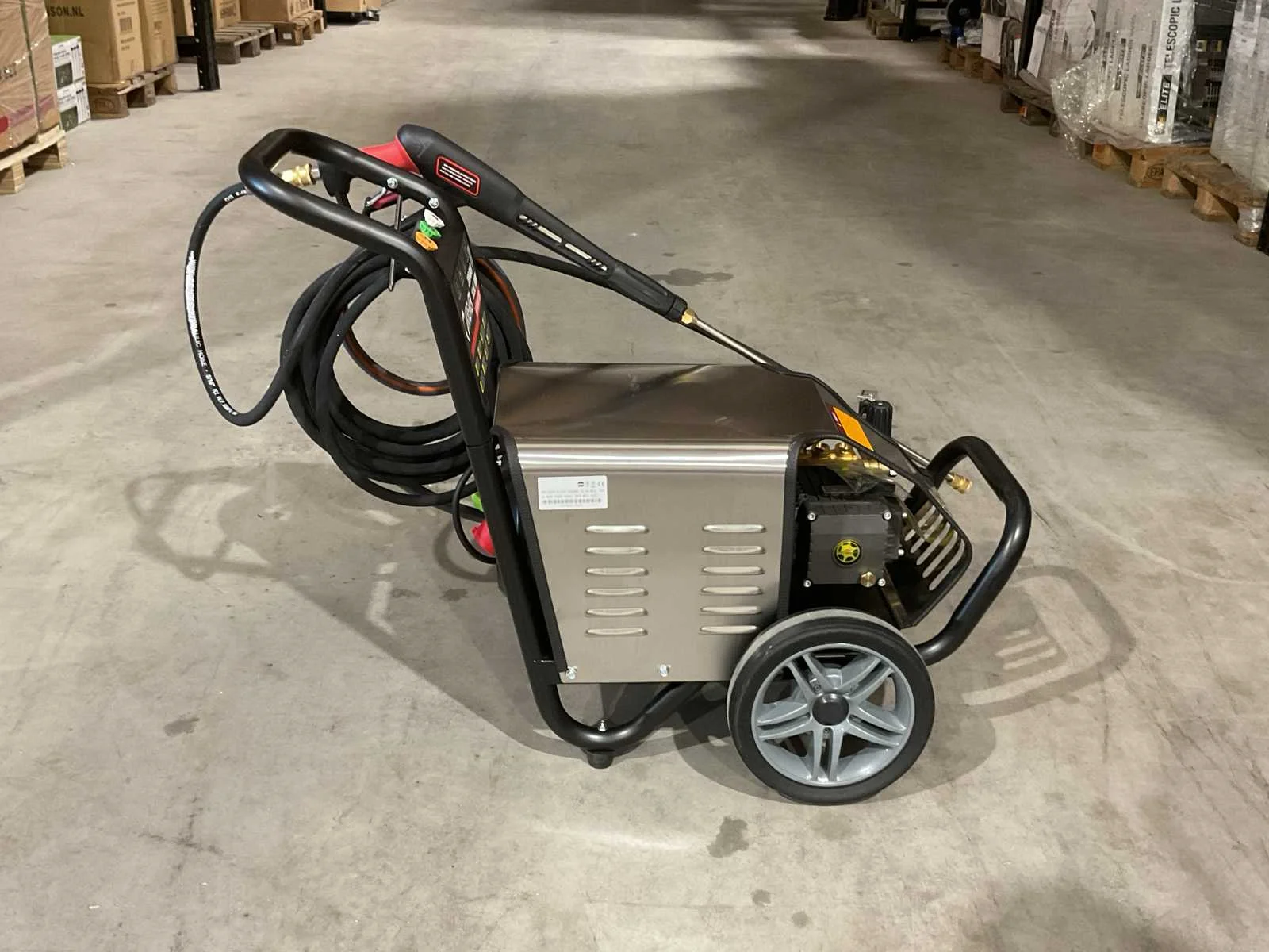 Voorzien van 10M hogedrukslang, staal gevlochten; Roestvrij stalen deksel; koperen triplex zuigerpomp; Stroomsnelheid water: 3.7GPM 14.0L/MIN; 200 bar; Snelheid: 1450 rpm; 4.0kw; 380V; Gewicht( KGS): 68; Afmetingen L*B*H(MM): 730*545*620; Ongebruikt in doos (Afmeting transport verpakking 730x545x620 mm lxbxh, gewicht 68 kg) Merk: Kremer Type: KR-2900-4.0T4 Bouwjaar: 2025 Maximale werkdruk: 200bar Temperatuurbereik min.: 0°c Temperatuurbereik max.: 60°c Capaciteit.: 840l/hr Mobiel: true Vermogen: 4kW Aansluiting: 380V Eigen gewicht: 68kg Totale afmeting L: 730mm Totale afmeting Breedte: 545mm Totale afmeting Hoogte: 620mm