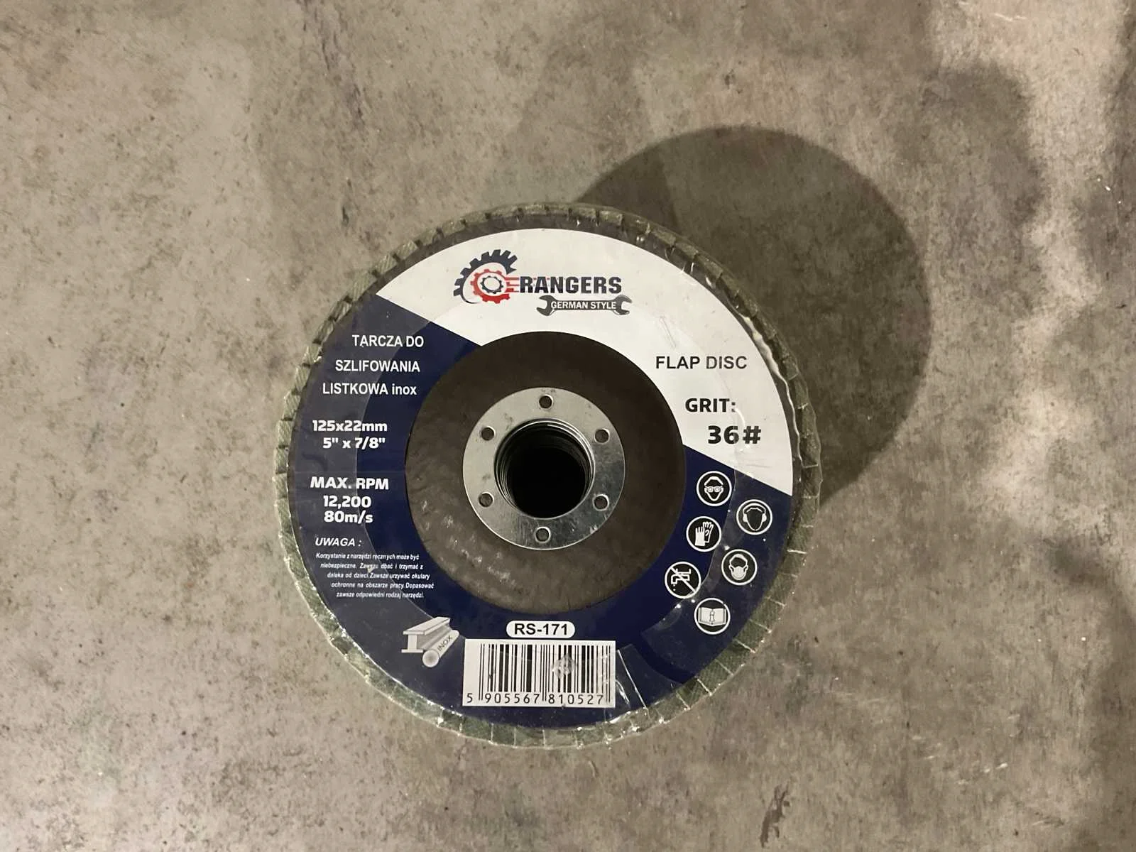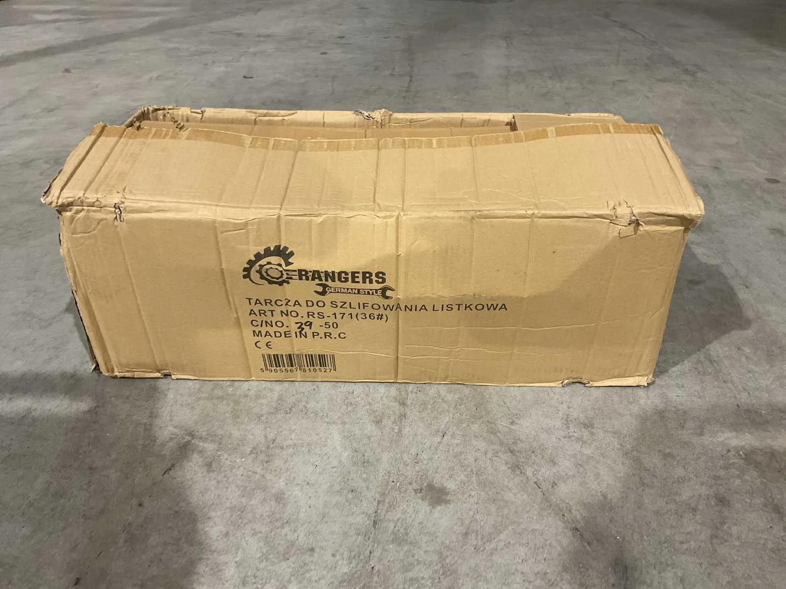 Voorzien van 1 doos met 2 dozen met elk 10 verpakkingen van 10 stuks; ongebruikt in doos Merk: Rangers Model: Grit 36 Type: RS-171 Schijfdiameter: 125mm Gewicht: 15kg Lengte: 70cm Breedte: 30cm Hoogte: 25cm