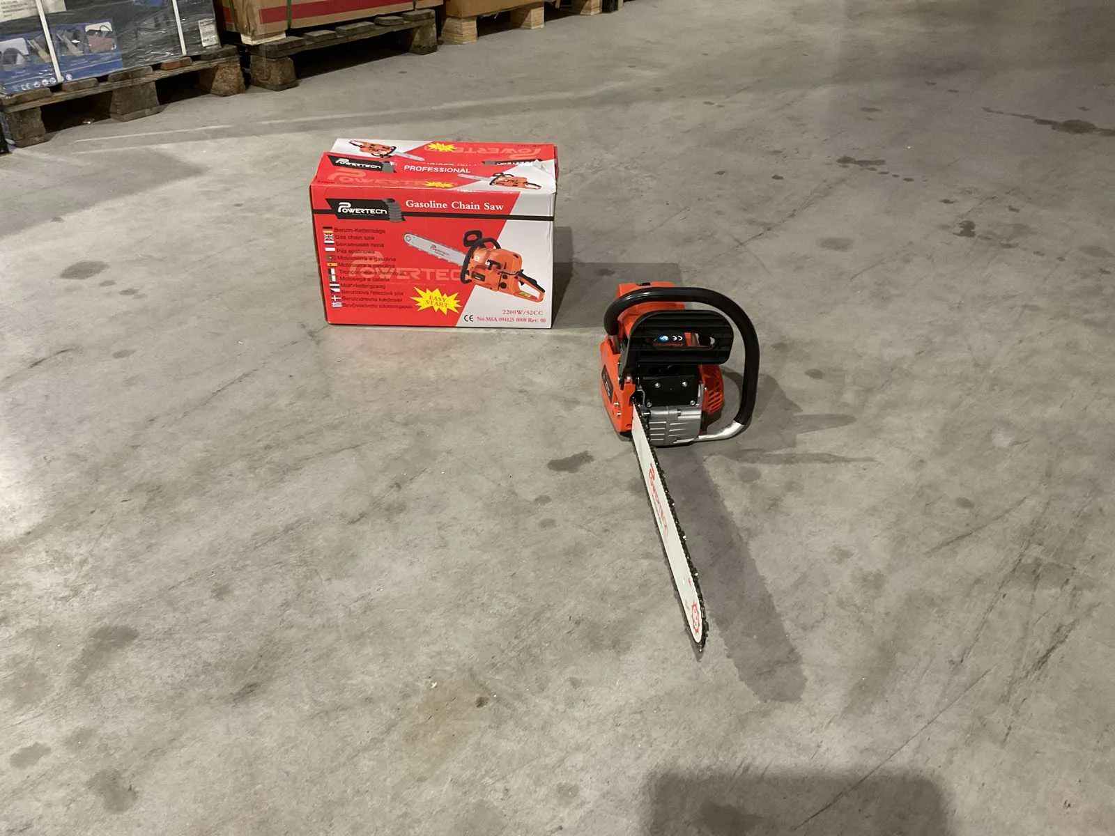 Voorzien van 2 takt benzine motor; 550ml tankinhoud; olietank inhoud 260ml; 7500rpm; 2,2kw vermogen; maximum snelheid met zaag 10000rpm; zaaglengte 38cm; Zaagtype K2 (Carlton); Ongebruikt in doos (Afmeting transport verpakking 300x600x500 mm lxbxh, gewicht 6.5 kg) Merk: Powertech Type: M6A 094125 0008 Bouwjaar: 2025 Zaagblad afm. l: 50mm Zaagblad afm. b: 5mm Brandstof: 2 takt benzine Motorvermogen (kW): 2.2kW Eigen gewicht: 6.5kg Totale afmeting L: 300mm Totale afmeting Breedte: 600mm Totale afmeting Hoogte: 500mm