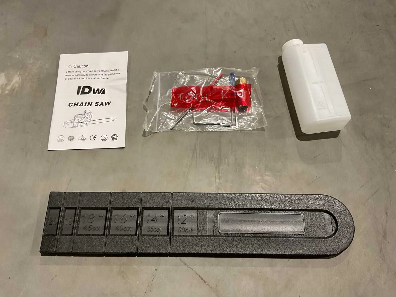 Voorzien van Stationair toerental: 3000rpm; Max. snijsnelheid: 10.000rpm; Inhoud brandstoftank: 580 ml; Krachtige motor: 52 cc; Zaaglengte: 52 cm; Brandstof: 1:35 (loodvrije benzine 35: twee-takt olie 1); Ketting dikte: 0.058 "/ 1,47 mm; Kettingsteek: 0,325 "/ 8,25 mm; Olietank: 250 ml; Trillingen: 8,5 m / s ², K = 1,5 m / s²; Geluidsdrukniveau: EN ISO 22868: 101 db (A) K = 3,0 dB (A); Geluidsniveau: EN ISO 22868: 2003: 114 db (A); beschermhoes; kettingpijlen; bougiesleutel; schroevendraaier; 2 Allen sleutels Merk: DW Type: DW-5200 Bouwjaar: 2025 Eigen gewicht: 6.5kg Totale afmeting L: 91mm Totale afmeting Breedte: 26.5mm Totale afmeting Hoogte: 28.5mm