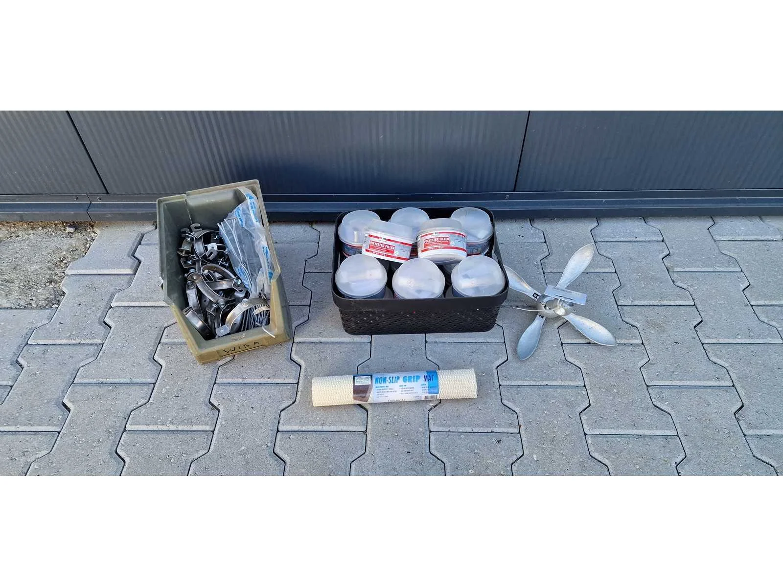 Voorzien van led strips; Lampen winkel presentatie; fatbike achter zitje; diverse spijkerbroeken; deur veren; takken zaag; diversen ijzerwaren; muismatten; blad blazer elektrisch; divers gebruikt gereedschap; bouwlamp; heggenschaar; kettingzaag; diverse boormachines; v-snaar; bankschroef; takkeschaar; anti slip mat; polyester vulmiddel; ringen en haringen; betonzaag; Kinzo betonboor; oliespuit; accuboormachine; looplamp; voetpomp; waterhaspel; hogedrukslang; waterslang; elektrische kabel; hydraulische vetspuit set; rol en strijkset; verkoop per complete pallet. Merk: Divers Product type: Verzamel pallet