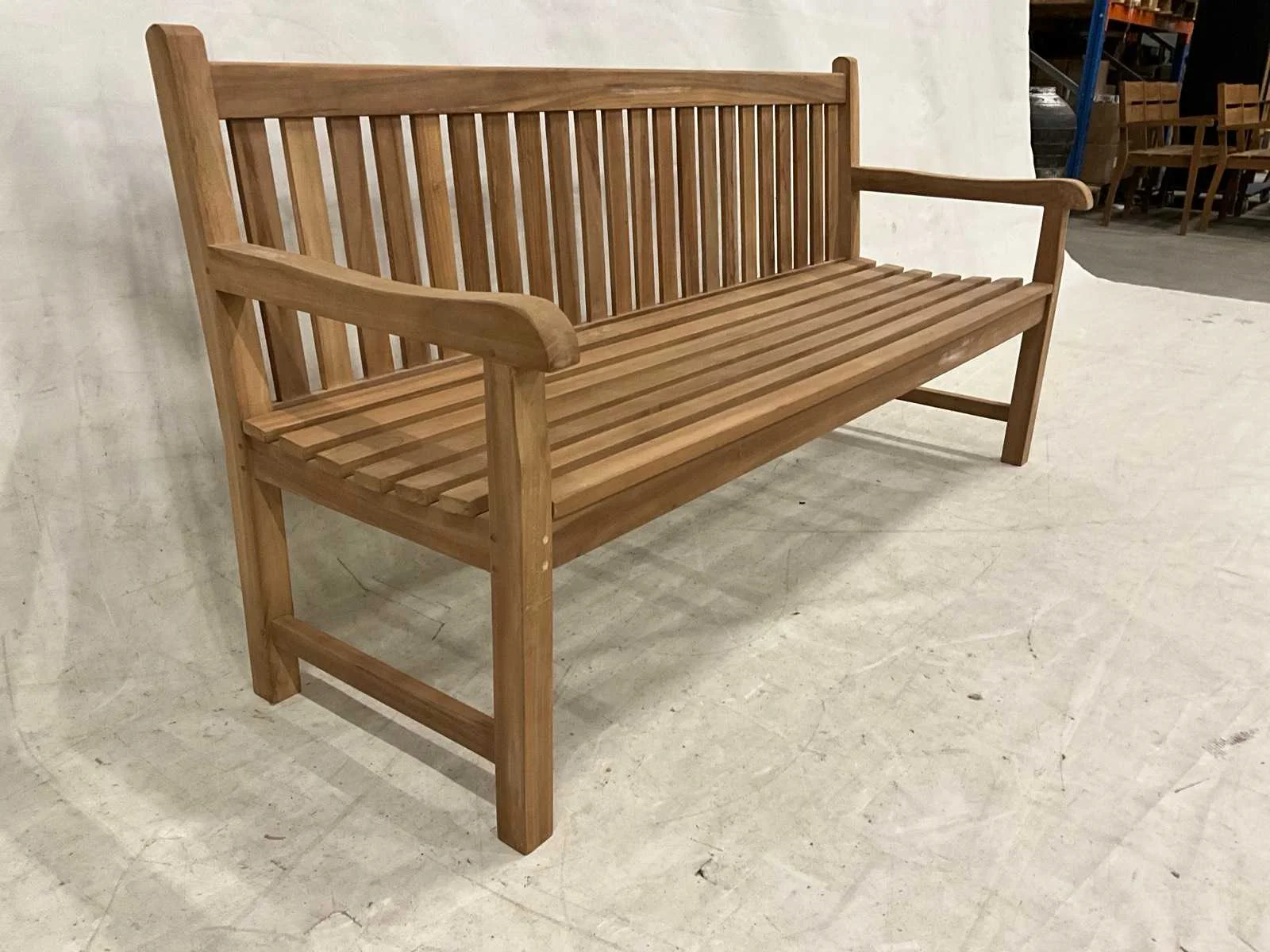 Klassieke tuinbank van 180 cm breed Breedte: 180cm Hoogte: 90cm Zithoogte: 45 Diepte: 55 Materiaal: Teakhout