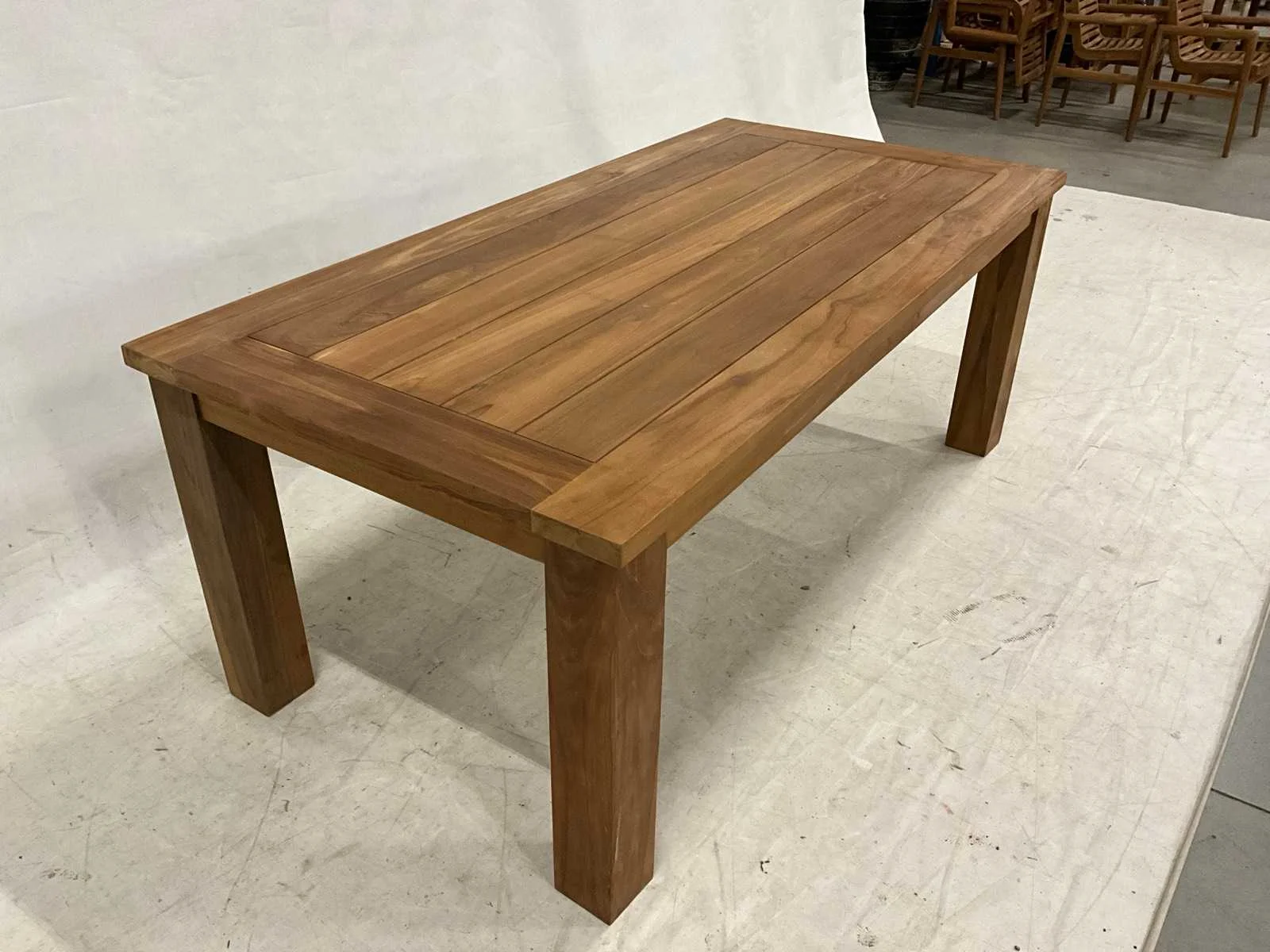 Teakhouten tuintafel 200x100 cm. Vorm: Rechthoek Lengte: 200cm Breedte: 100cm Hoogte: 76cm Materiaal: Teakhout