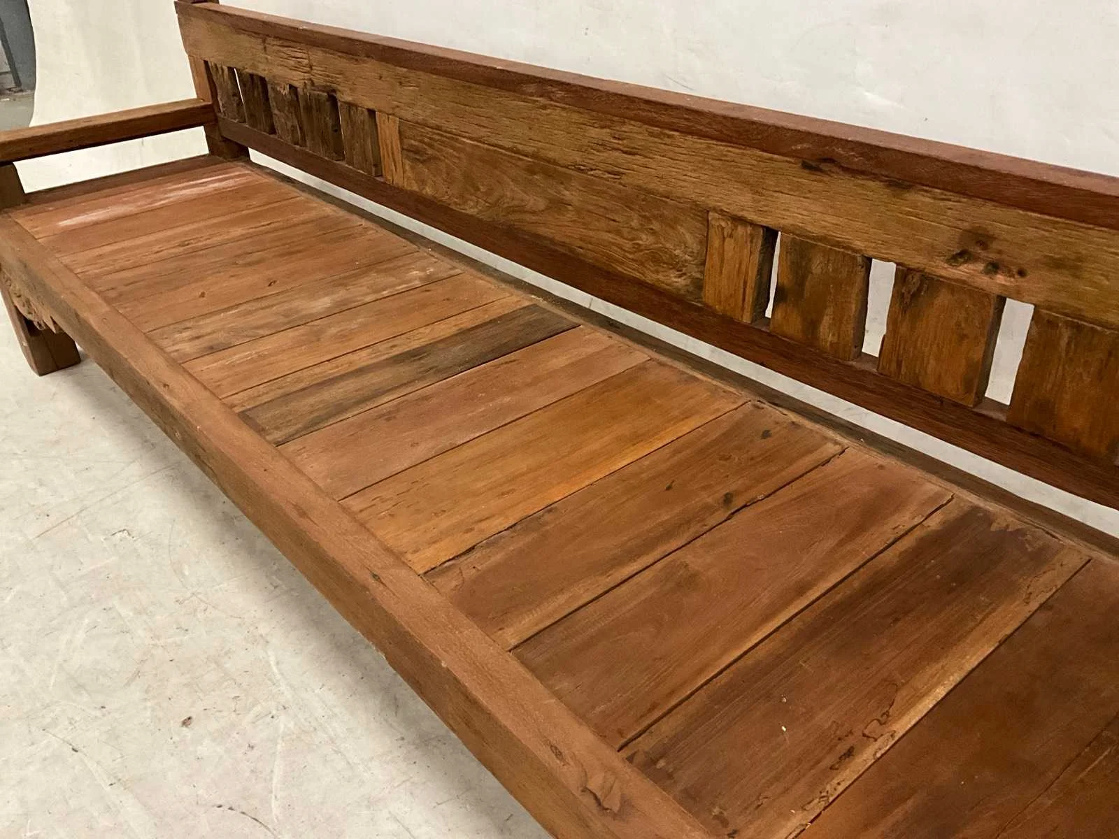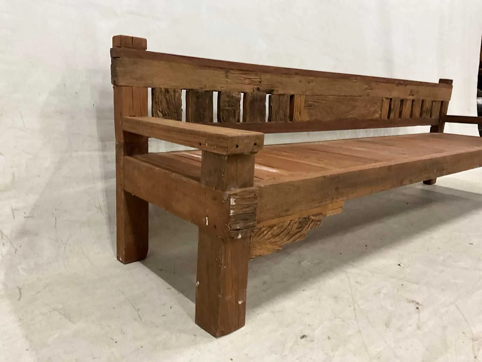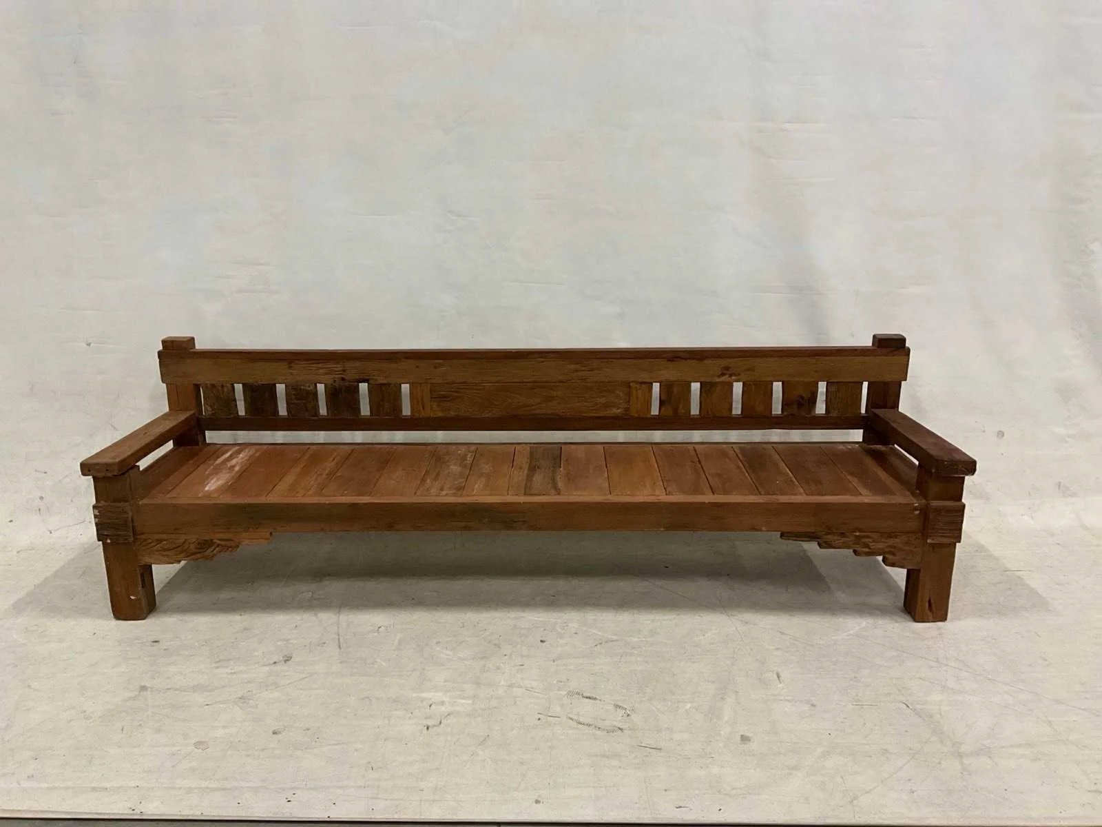 Rustieke tuinbank van 300 cm geschikt voor Patio of tuinhuis. Breedte: 300cm Hoogte: 92cm Zithoogte: 46 Diepte: 55 Materiaal: Recycled teakhout