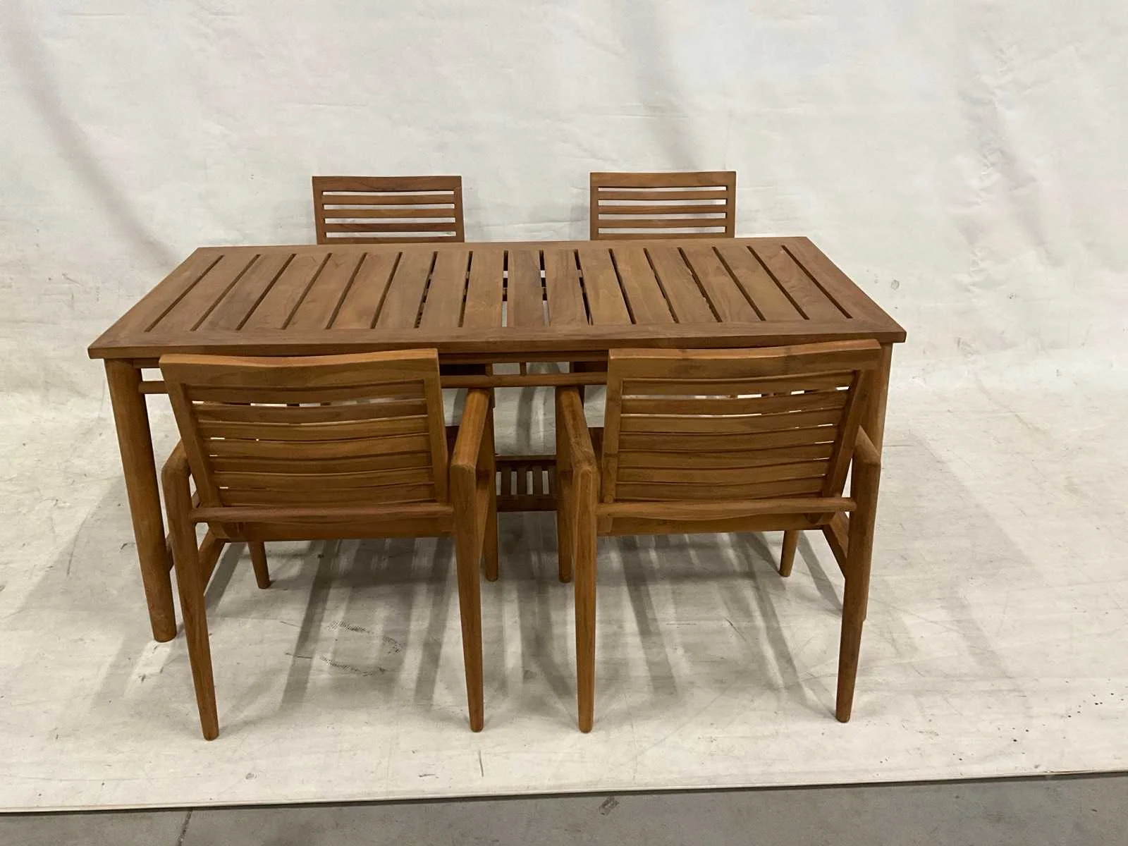 Teakhouten design tuinset, tafel 180x80 cm en 4 stoelen. Stoelen: 4 Breedte: 180cm Hoogte: 77cm Materiaal: Teakhout Diepte: 80