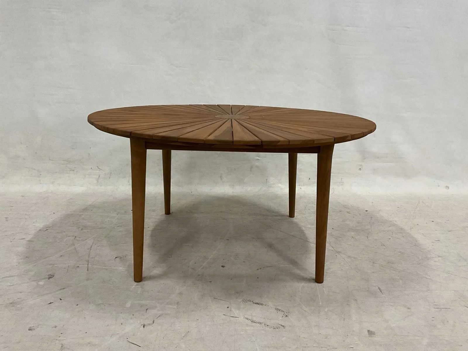 Ronde teakhouten tuintafel van 150 cm doorsnede Vorm: Rond Lengte: 150cm Breedte: 150cm Hoogte: 76cm Materiaal: Teakhout