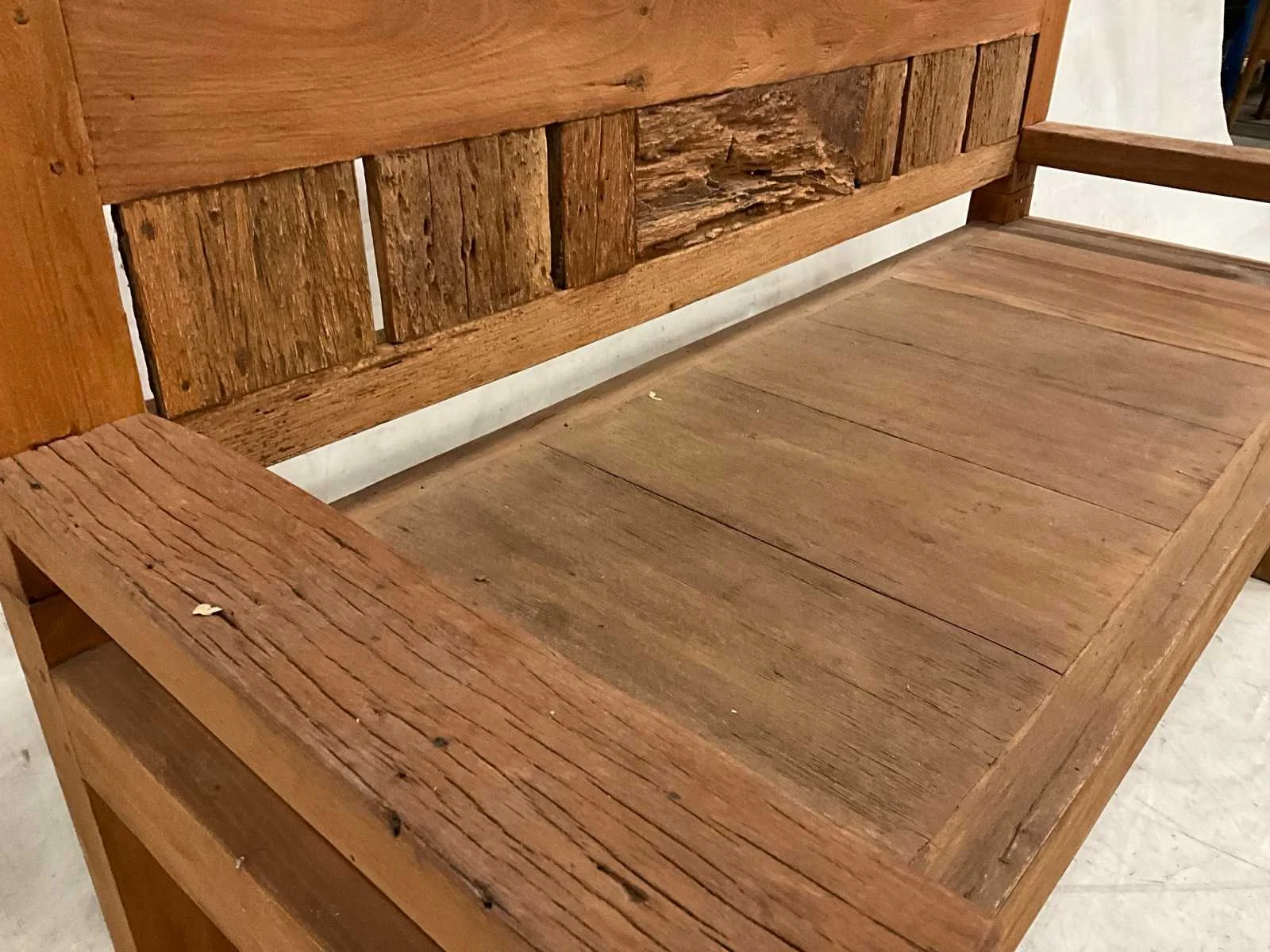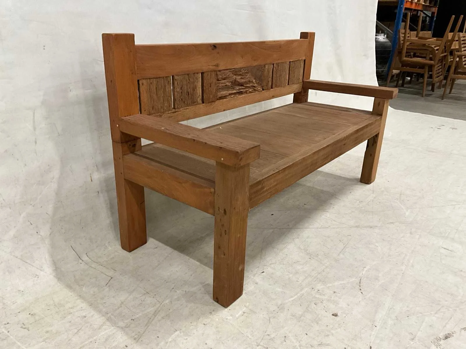 Rustieke tuinbank van 160, geschikt voor patio of tuinhuis. Breedte: 160cm Hoogte: 90cm Zithoogte: 46 Diepte: 60 Materiaal: Recycled teakhout