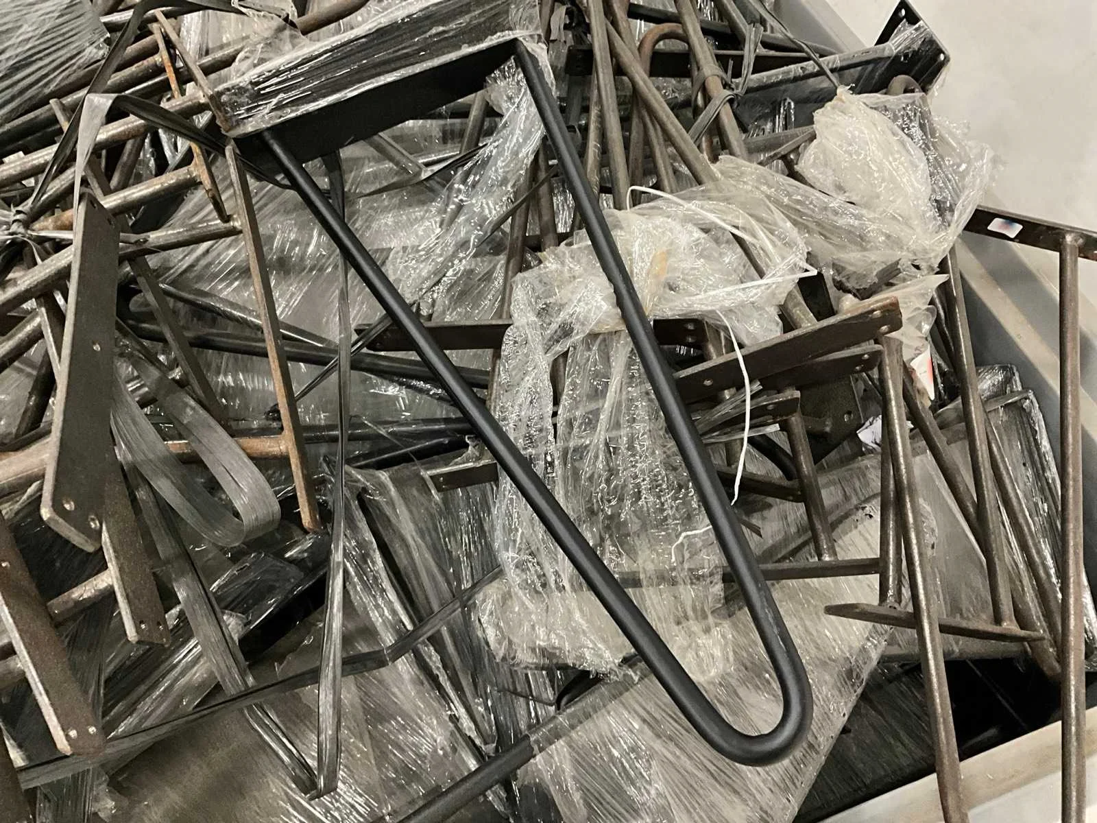 Grote partij stalen salontafel pootjes, zowel zwart gepowdercoat als blank staal. Kleur: Staal en zwart Lengte: 8cm Breedte: 20cm Hoogte: 44cm