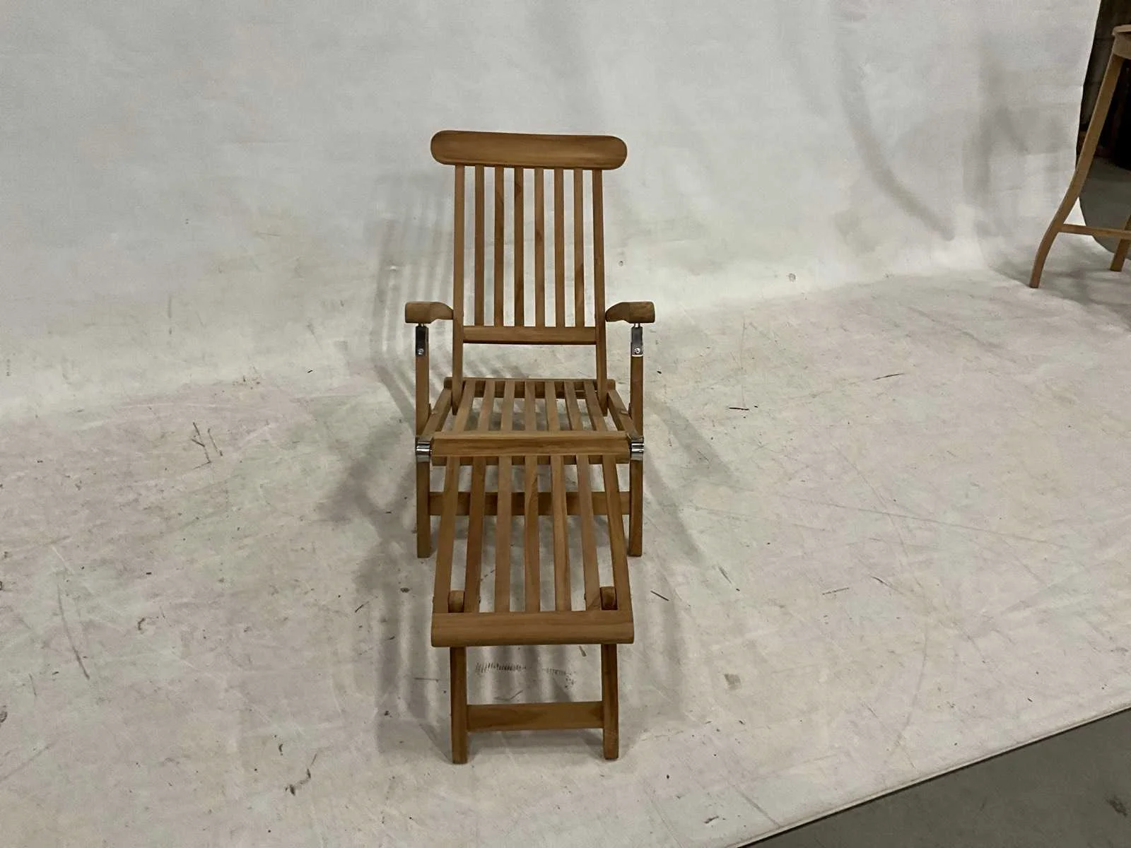 In meerdere standen verstelbaar en opklapbaar Lengte: 160cm Breedte: 60cm Hoogte: 90cm Materiaal: Teakhout