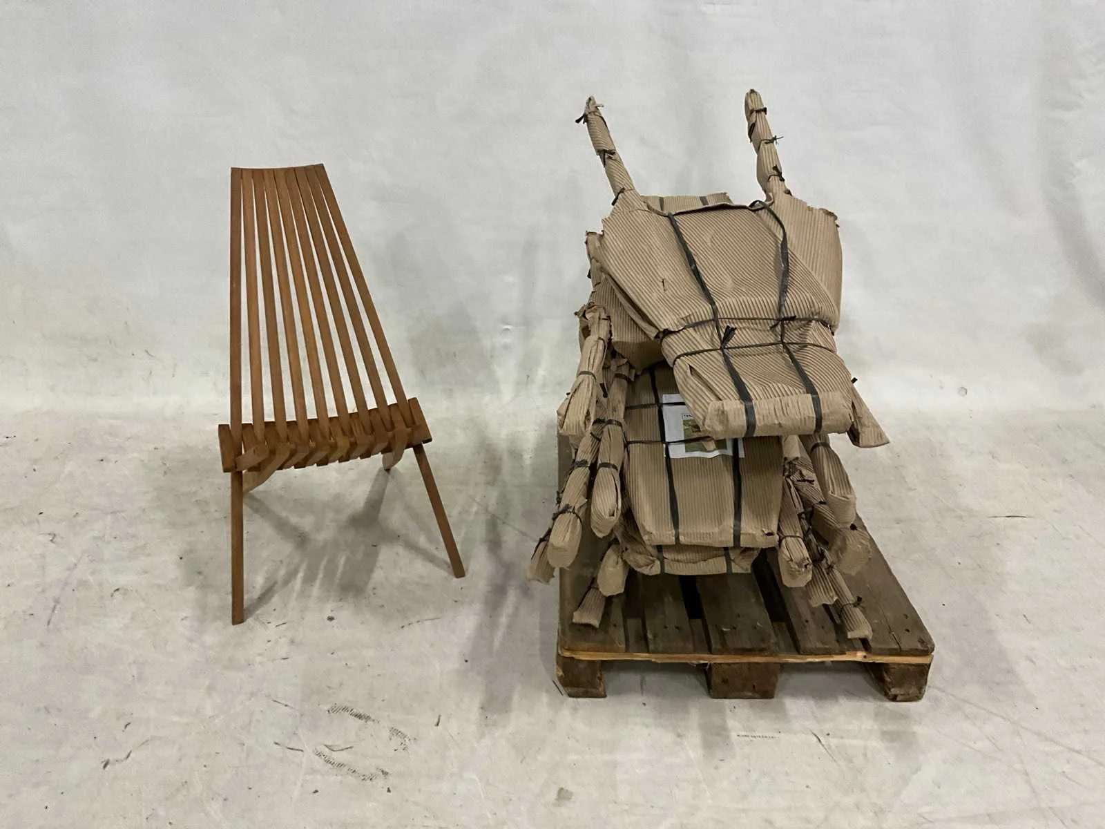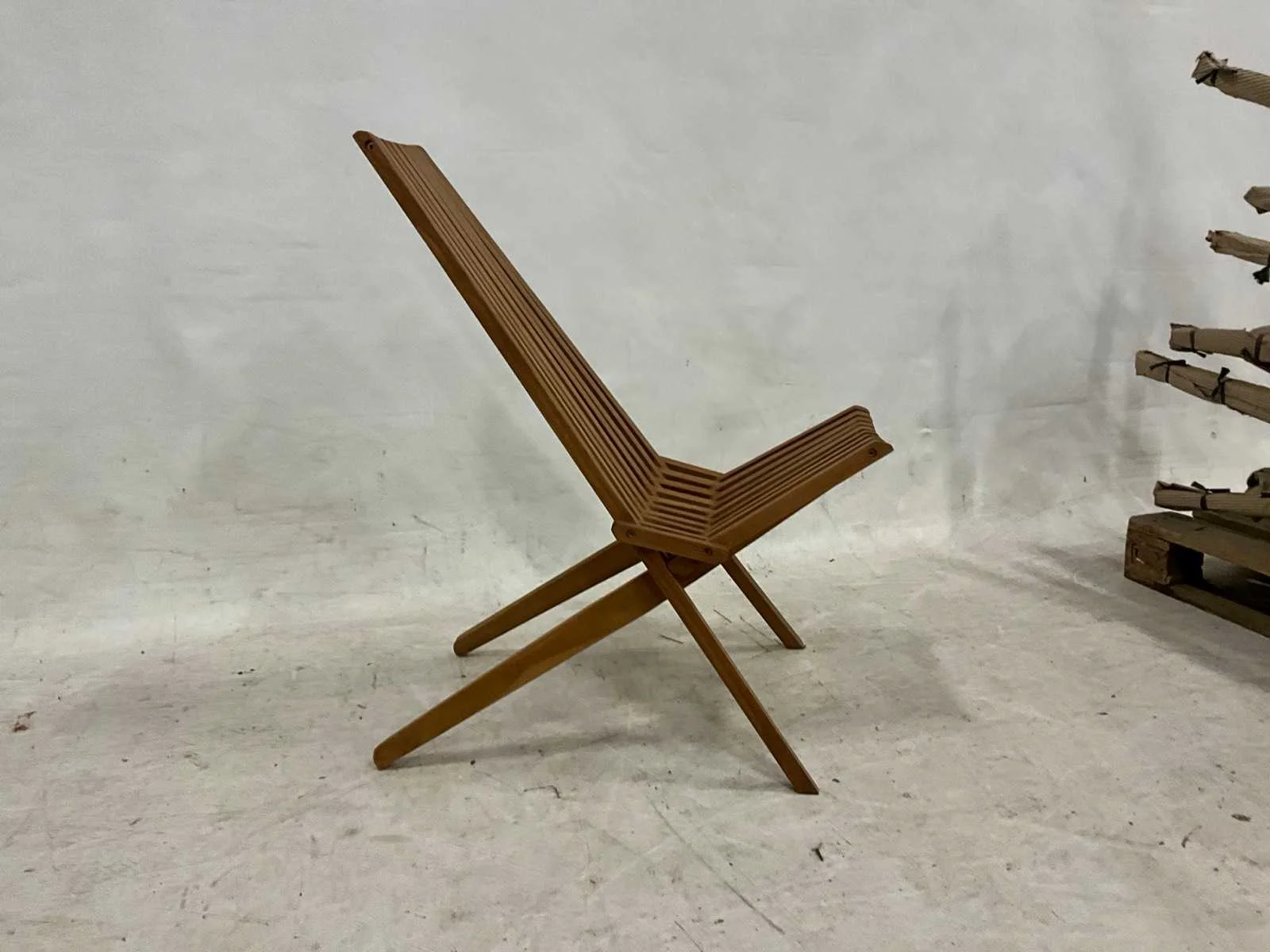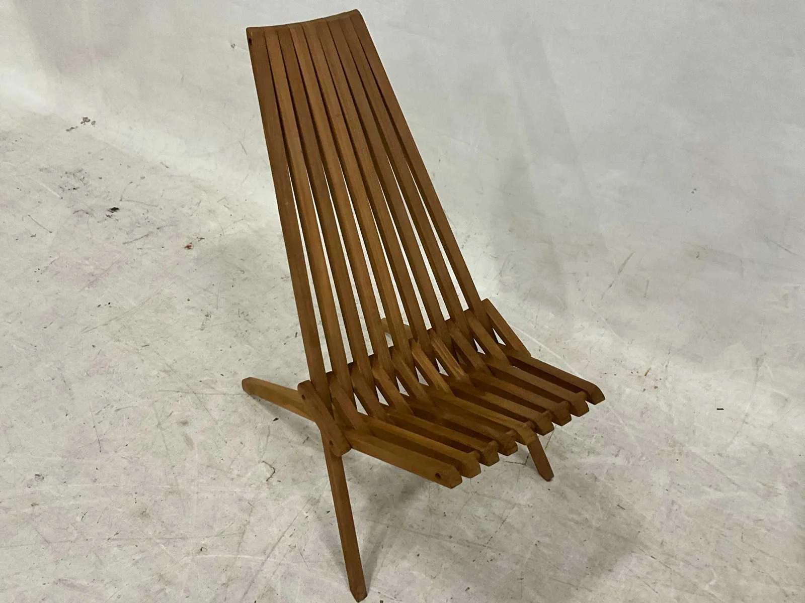 Partij inklapbare tuinstoelen Lengte: 70cm Breedte: 50cm Hoogte: 100cm Zithoogte: 40 Materiaal: Teakhout