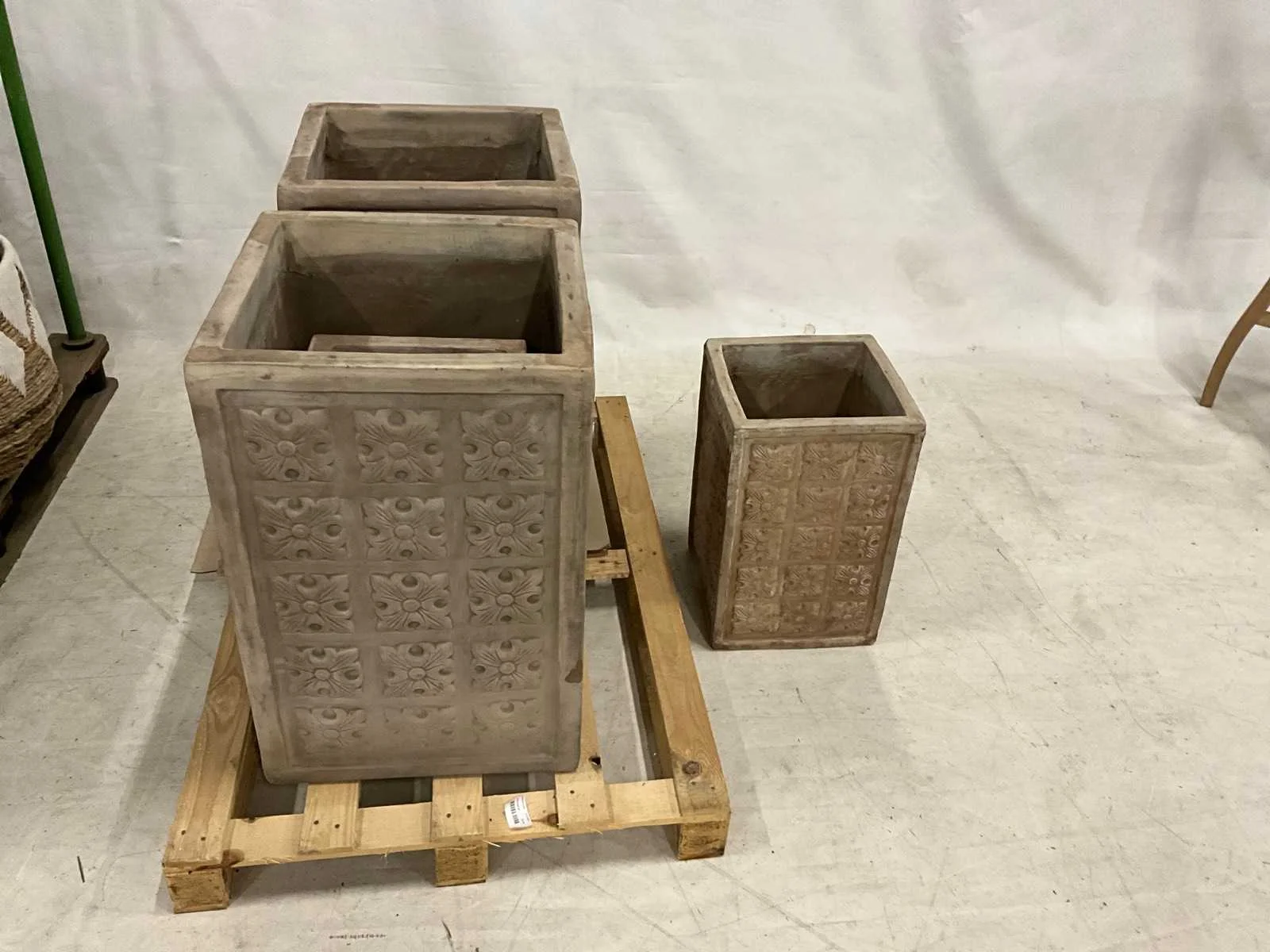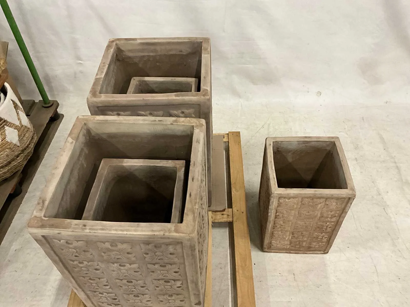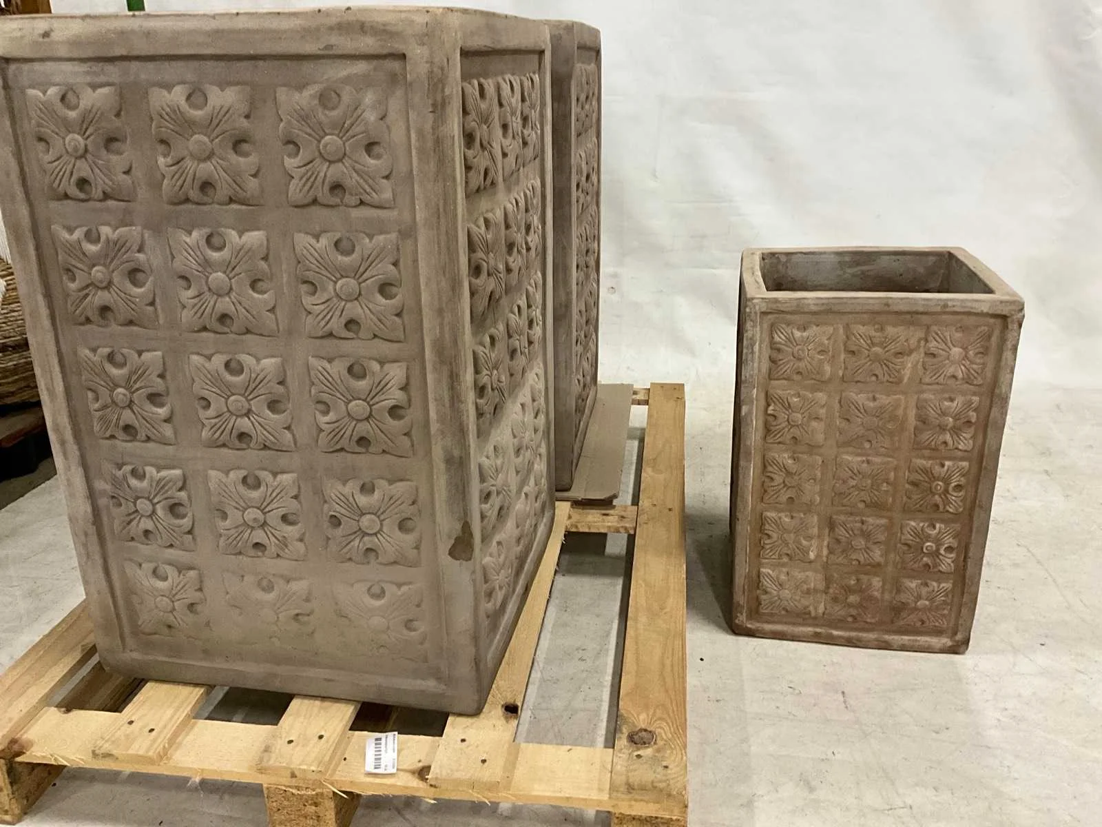 5x terracotta bloempot in twee maten 45x45x70 en 33x33x50 cm Kleur: Terracotta Lengte: 45cm Breedte: 45cm Hoogte: 70cm Materiaal: Terracotta