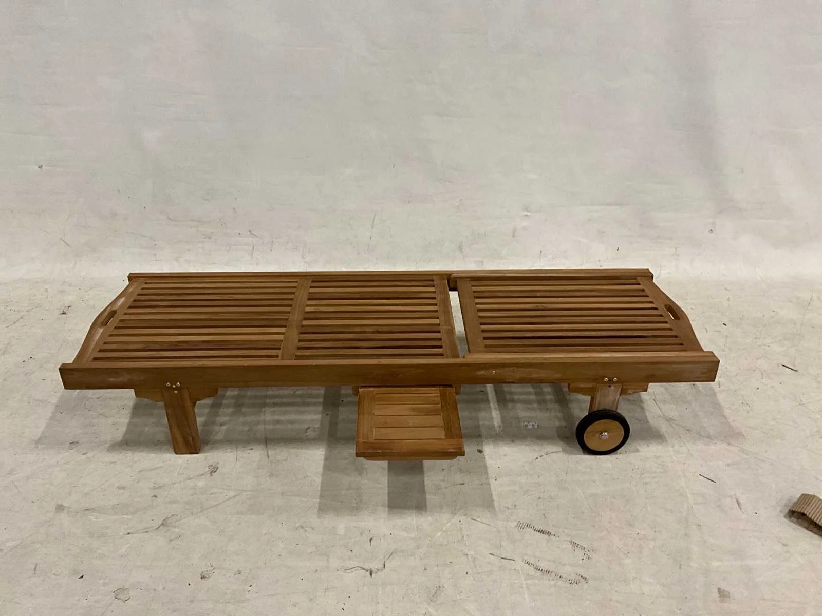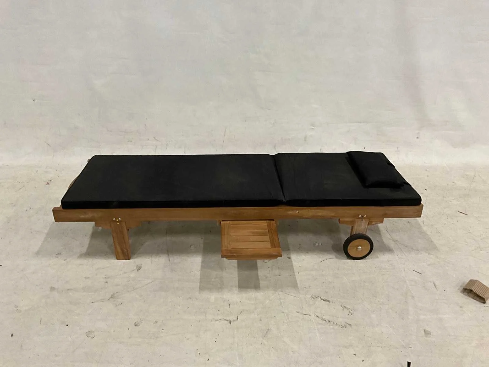 Ligbed in 3 standen verstelbaar, met een zwart kussen en verrijdbaar Kussens: true Verstelbaar: true Kleur: Zwart Lengte: 200cm Breedte: 65cm Hoogte: 35cm Materiaal: Teakhout