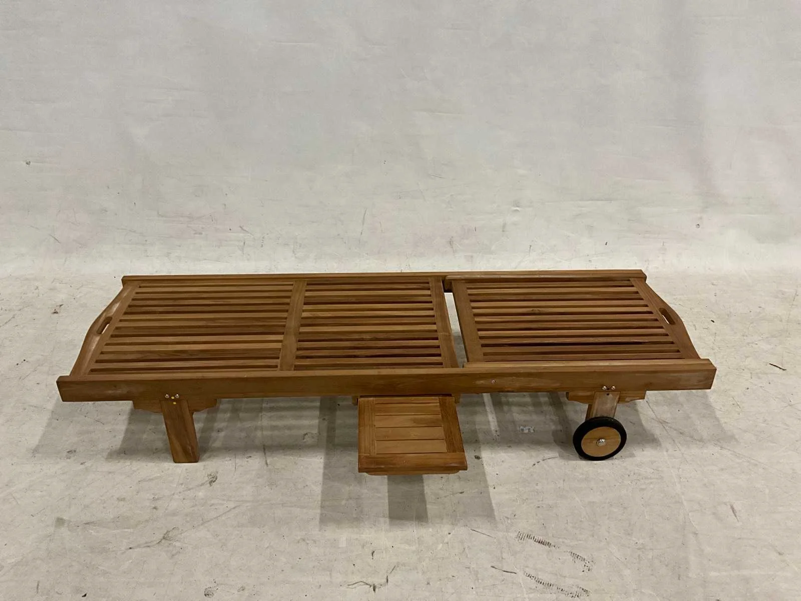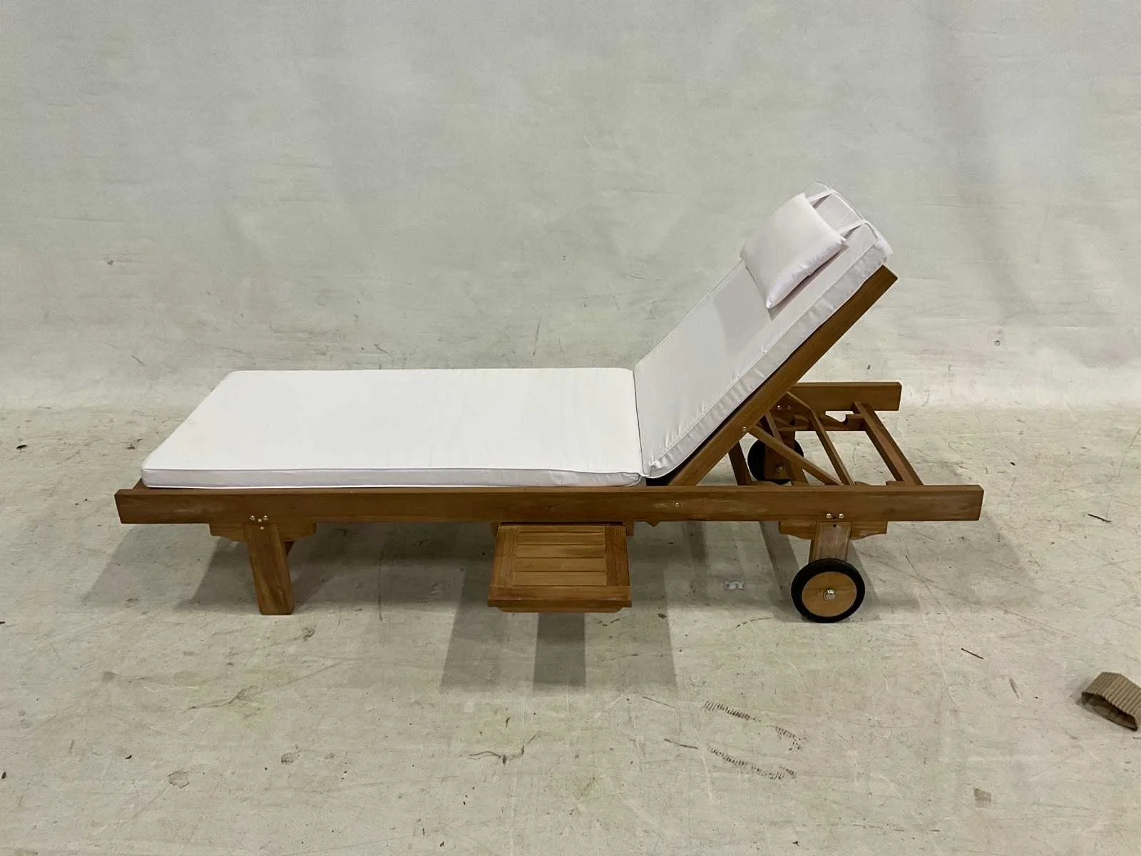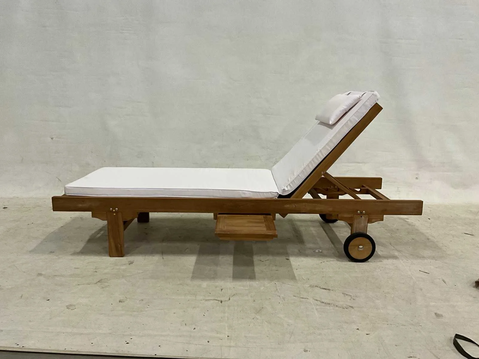 Ligbed in 3 standen verstelbaar, met een wit kussen en verrijdbaar Kussens: true Verstelbaar: true Kleur: Wit Lengte: 200cm Breedte: 65cm Hoogte: 35cm Materiaal: Teakhout