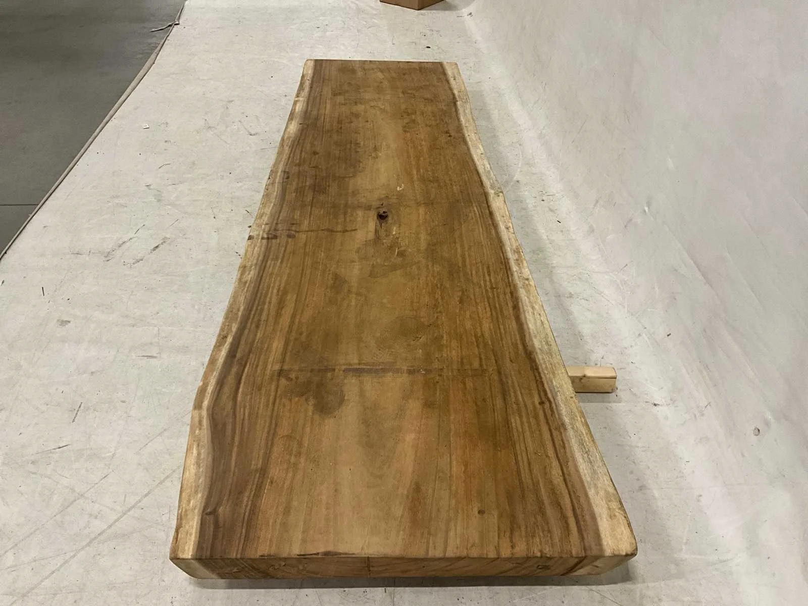 Suar boomstamblad van 300x102-85x9 cm. Merk: Suar Vorm: Rechthoek Gewicht: 250kg Lengte: 300cm Breedte: 102cm Hoogte: 9cm Materiaal: Suarhout