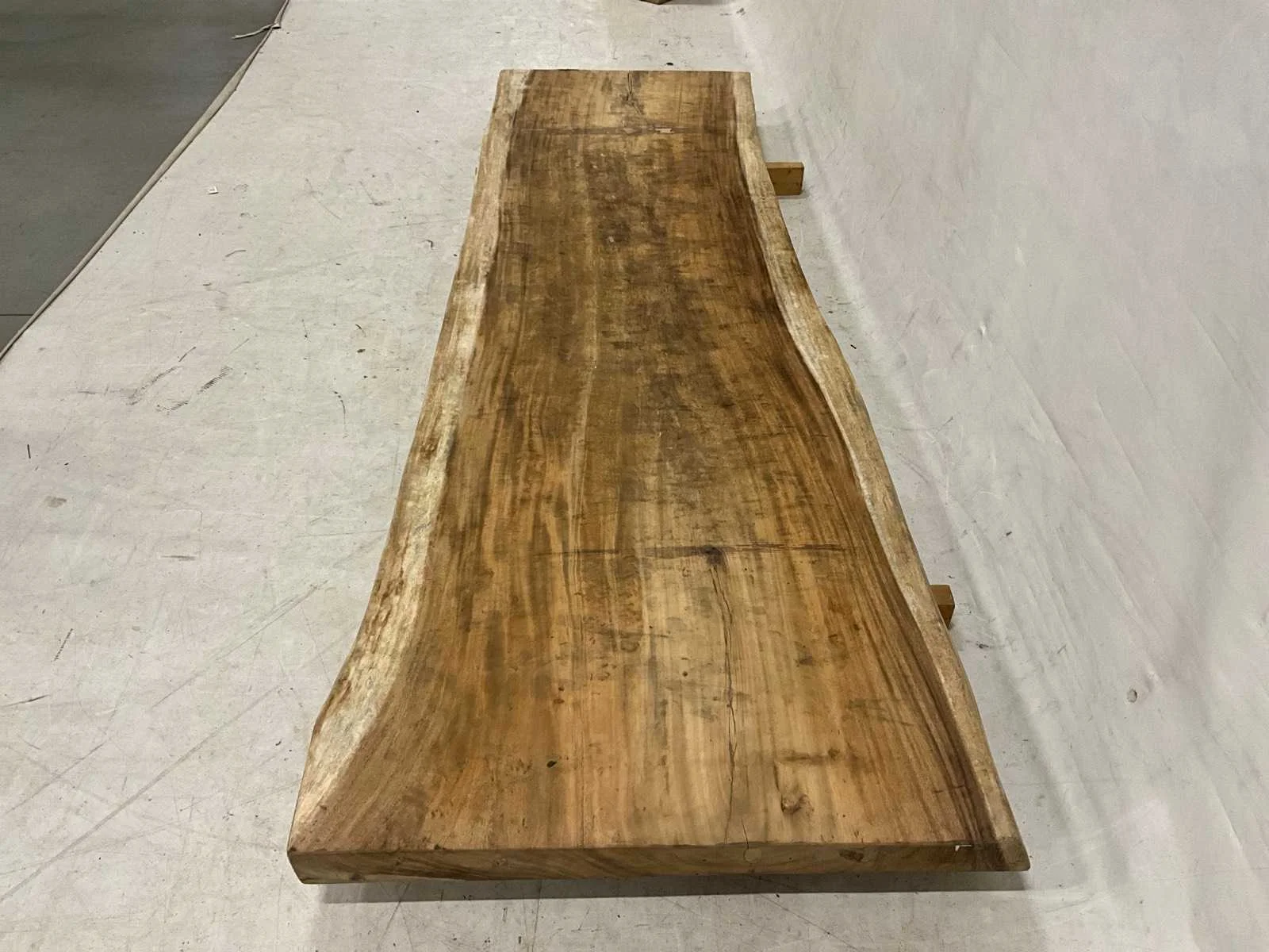 Suar boomstamblad van 300x102-88x9 cm. Merk: Suar Vorm: Rechthoek Gewicht: 250kg Lengte: 300cm Breedte: 102cm Hoogte: 9cm Materiaal: Suarhout