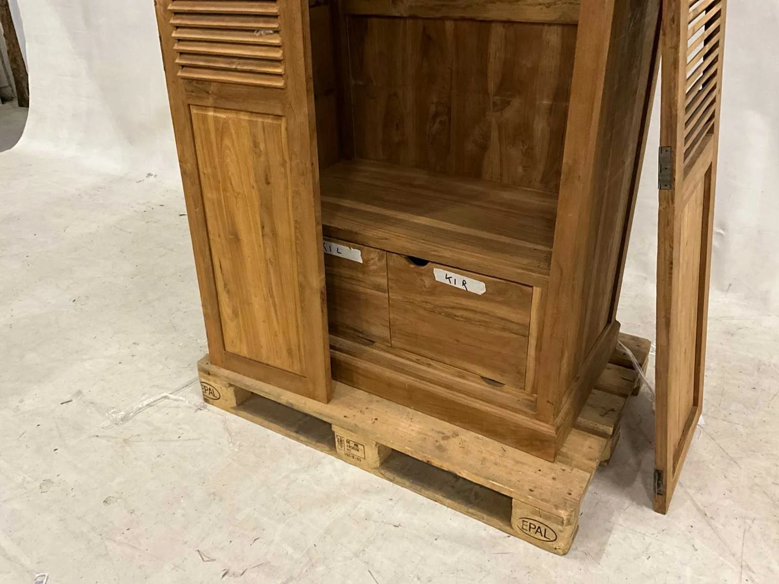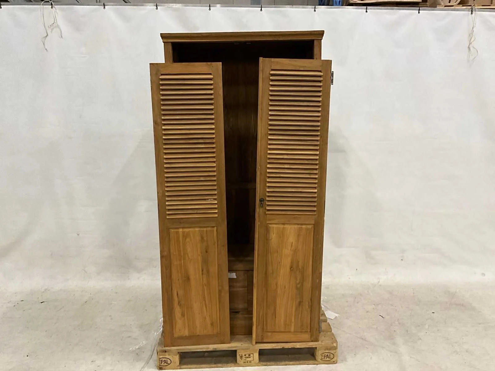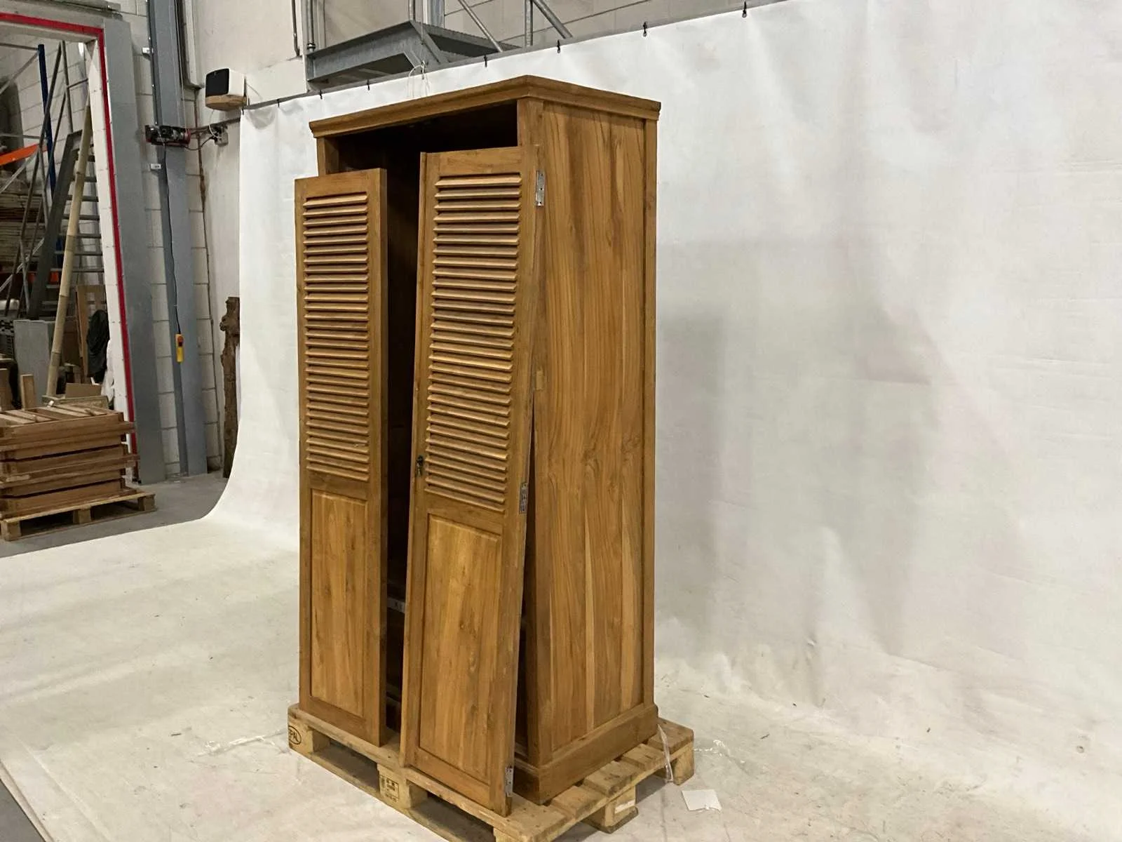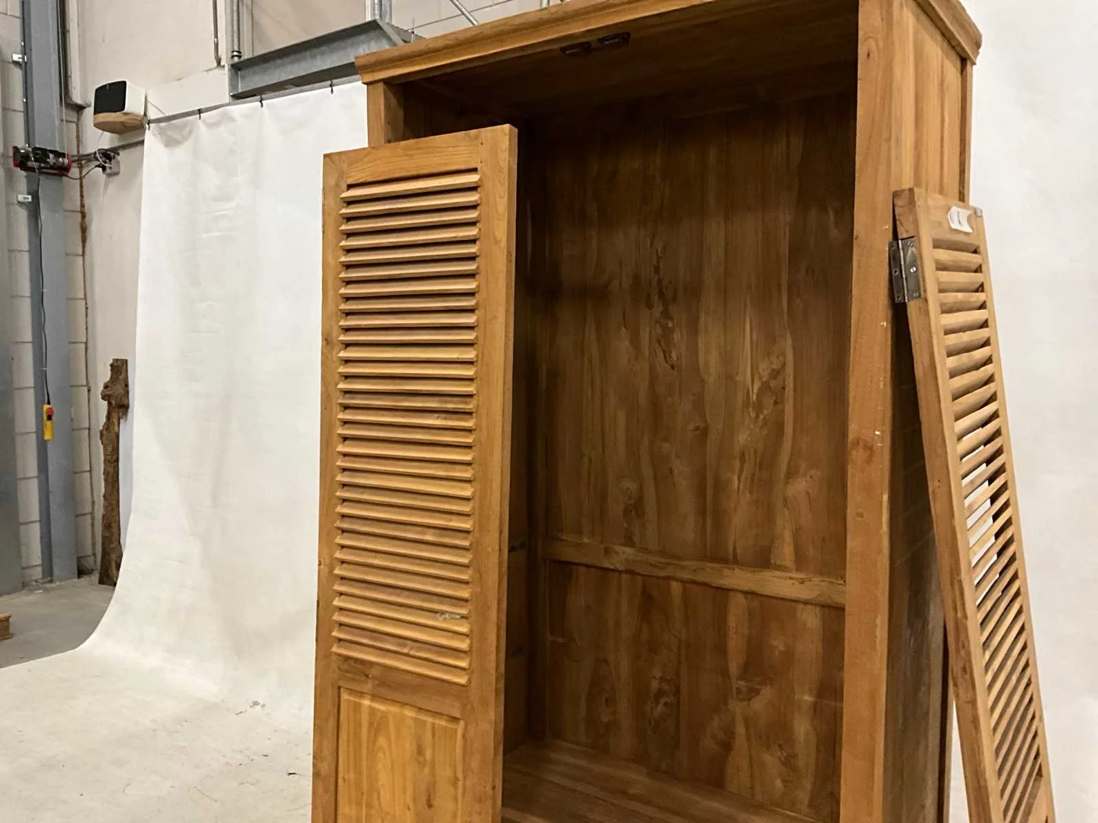 Deuren los erbij geleverd. Breedte: 97cm Hoogte: 200cm Diepte: 57cm Materiaal: Teakhout