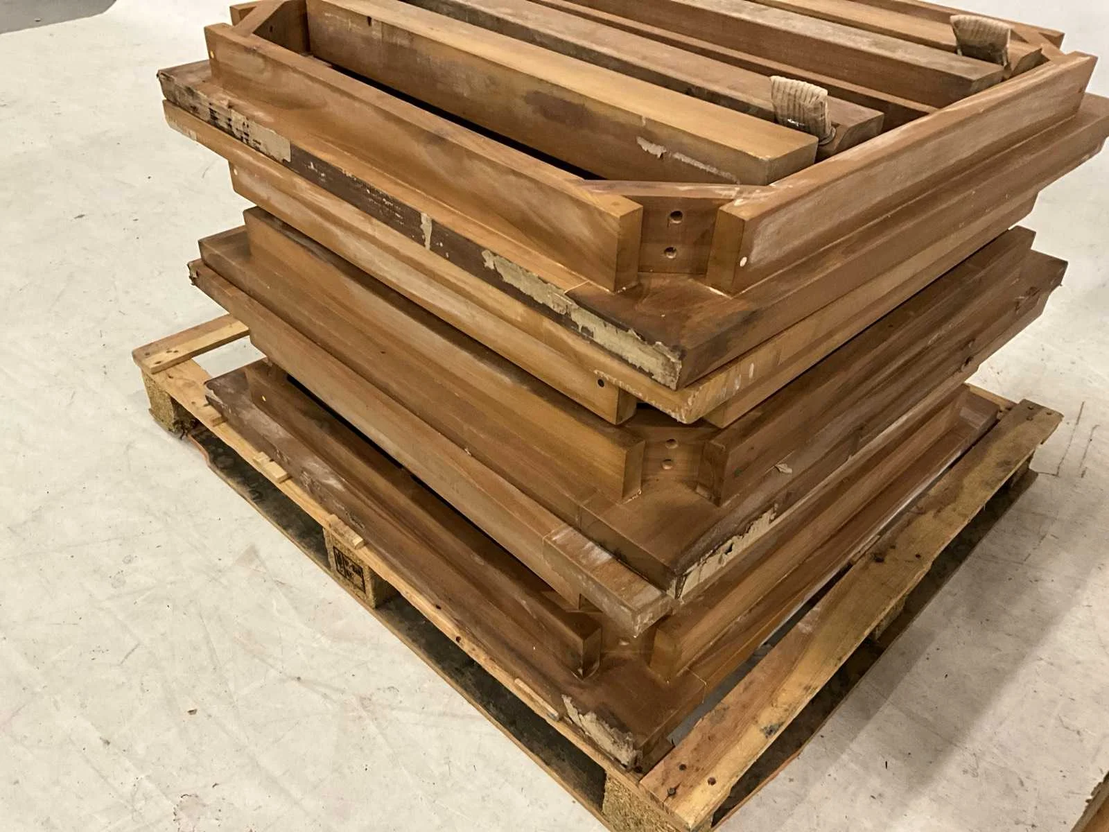 6 vierkant tuintafel van 90x90 met wat verpakking schade (papier vlekken) Vorm: Vierkant Lengte: 90cm Breedte: 90cm Hoogte: 76cm Materiaal: Teakhout