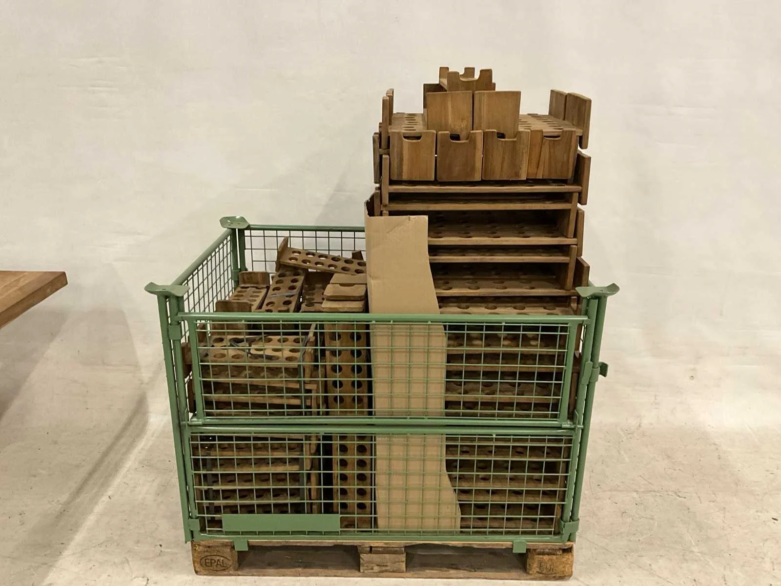 Eierbakjes, of leuk met een reageerbuisje met bloemetje erin. Twee maten 55x12x13 cm en 37x12x10 cm. Lengte: 55cm Breedte: 12cm Hoogte: 13cm Materiaal: Teakhout