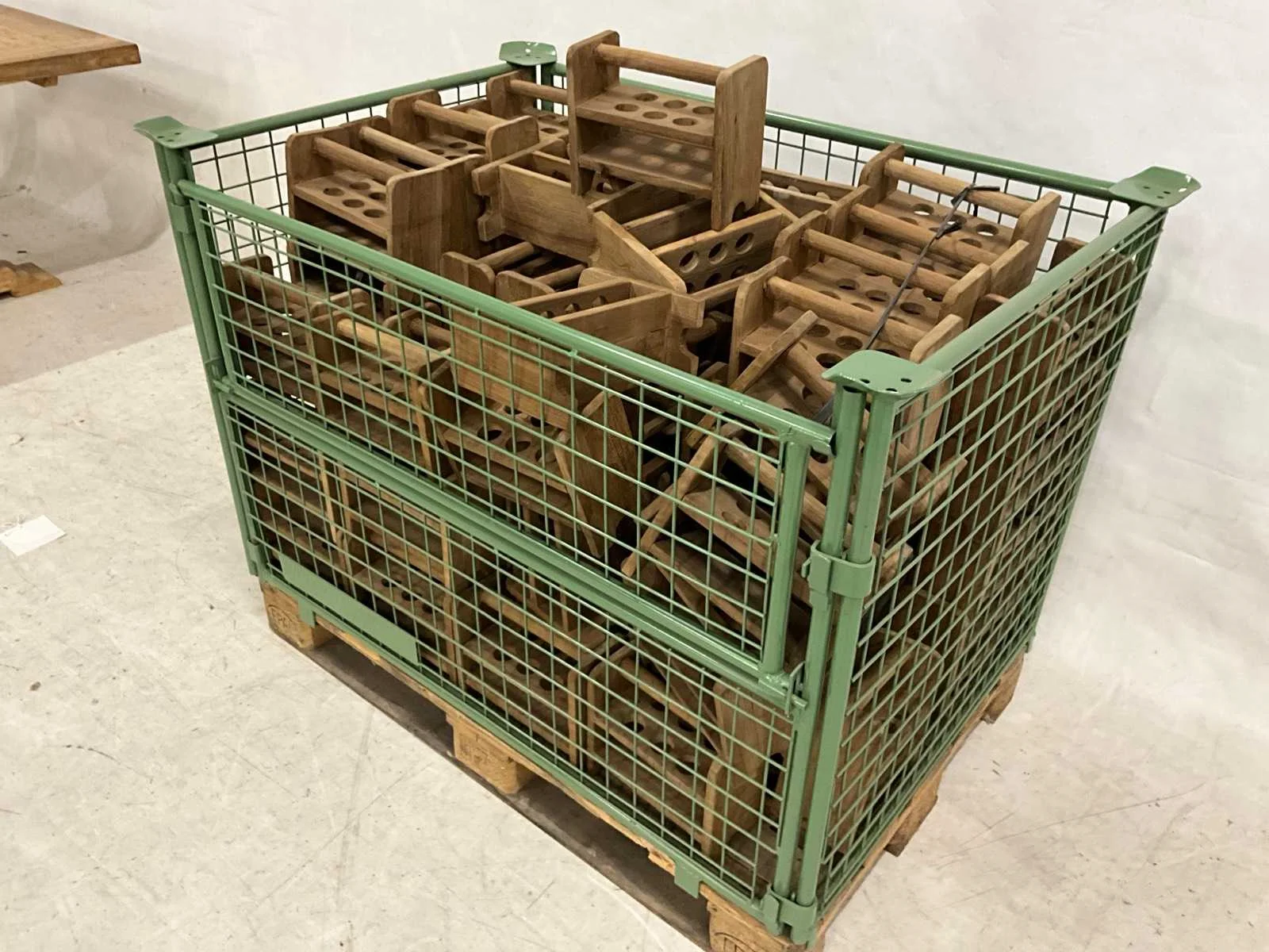 Eierbakjes, of leuk met een reageerbuisje met bloemetje erin. Lengte: 25cm Breedte: 12cm Hoogte: 21cm Materiaal: Teakhout