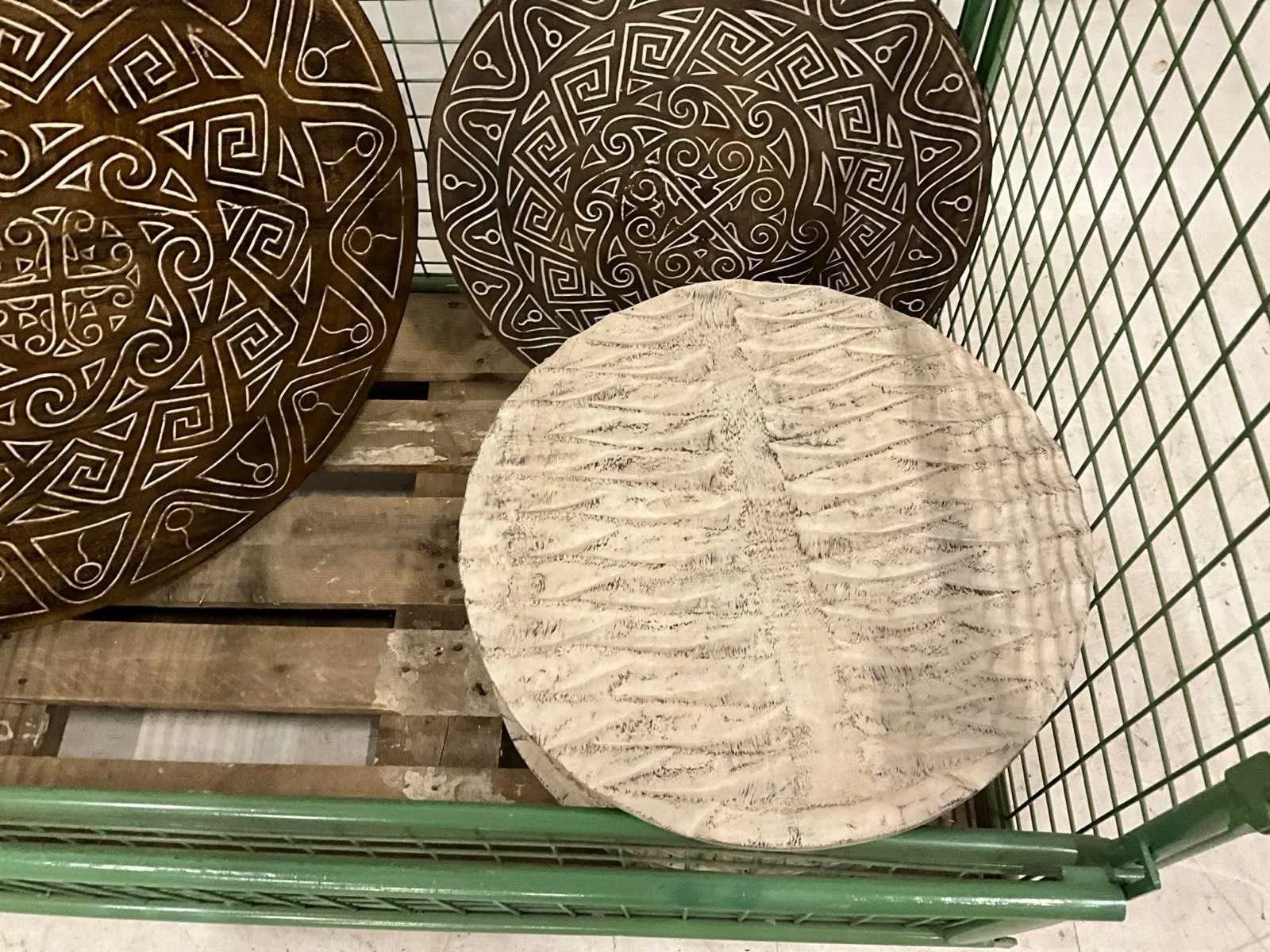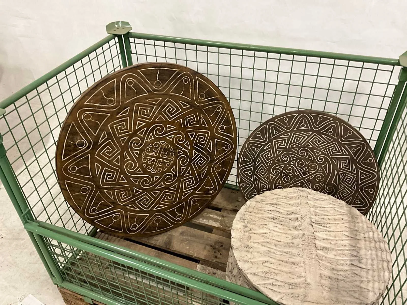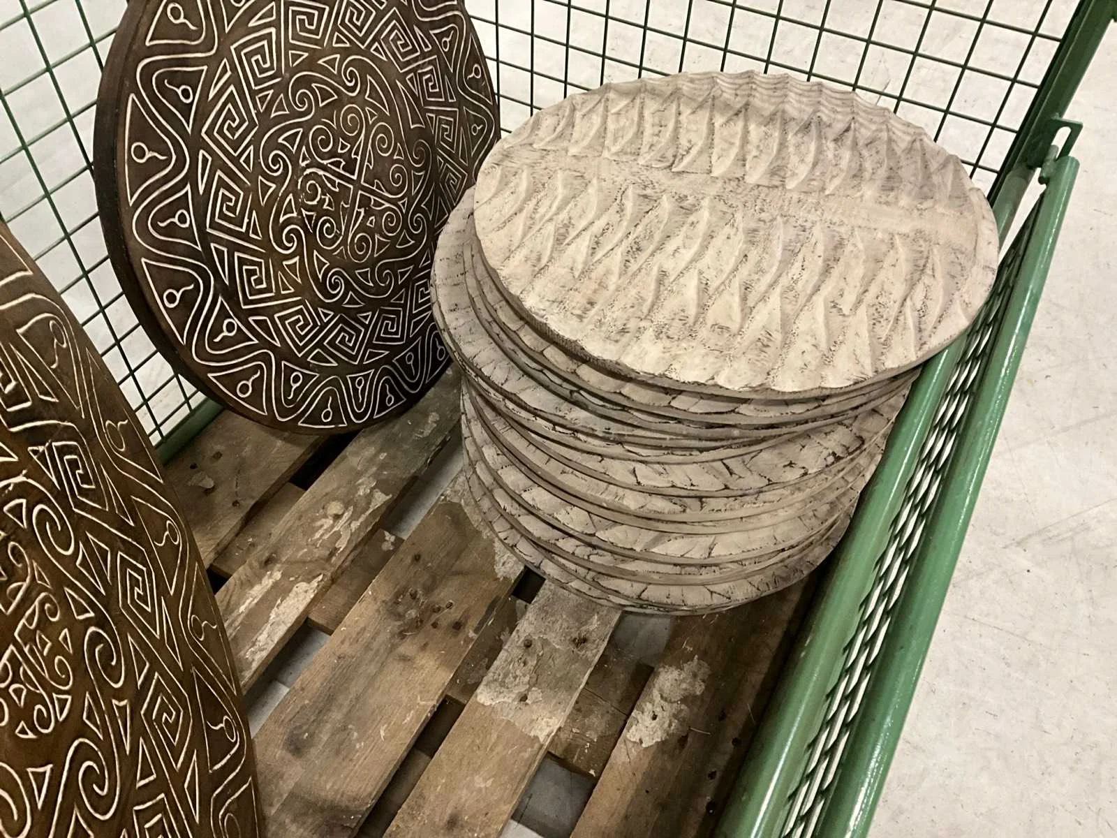 16 stuks Wandpanelen van 80 en 50 cm doorsnede . Kleur: Bruin en whitewash Lengte: 80cm Breedte: 80cm Materiaal: Suarhout