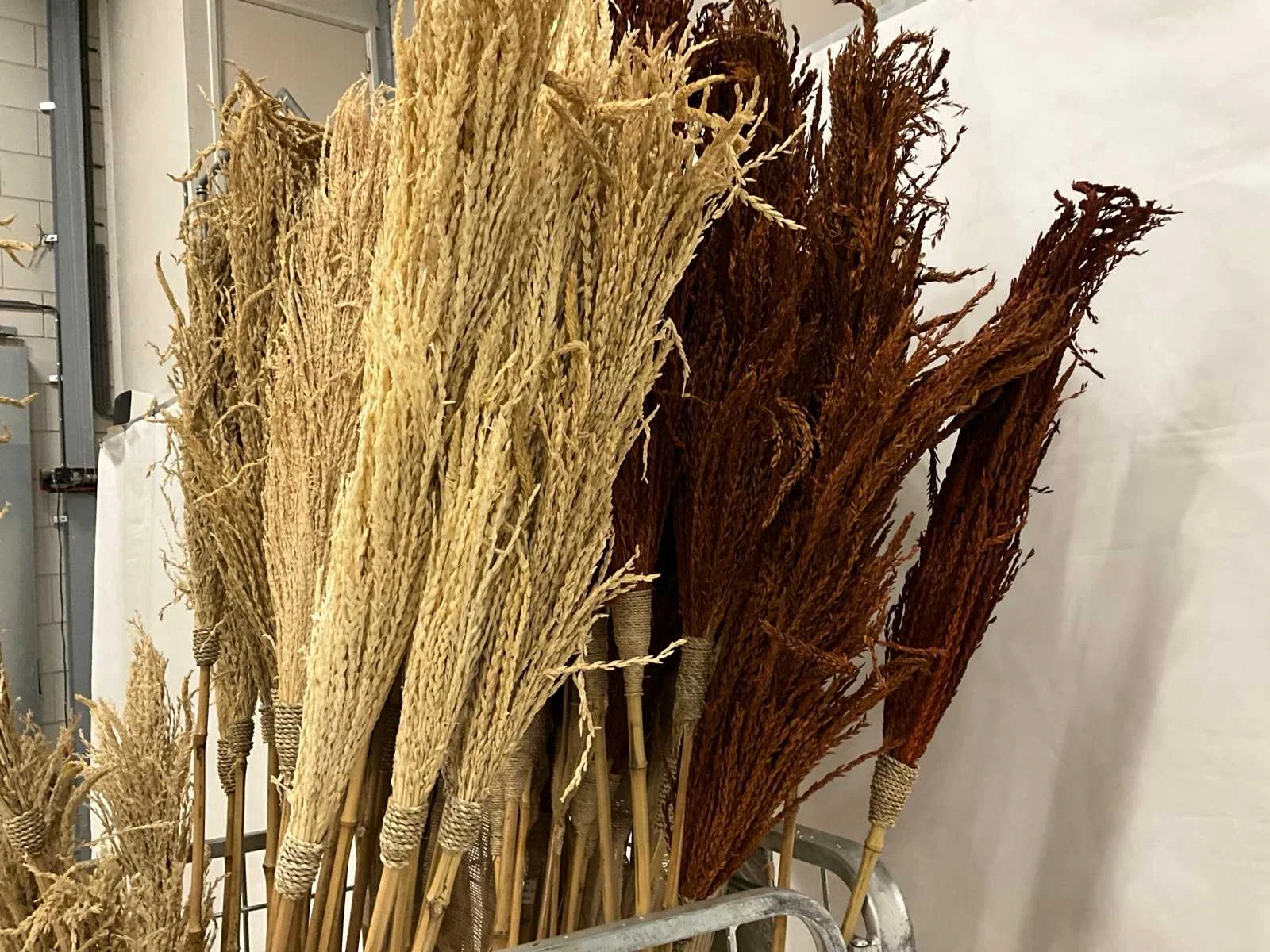Pluimen in twee kleuren Hoogte: 180cm Materiaal: Bamboe en graan