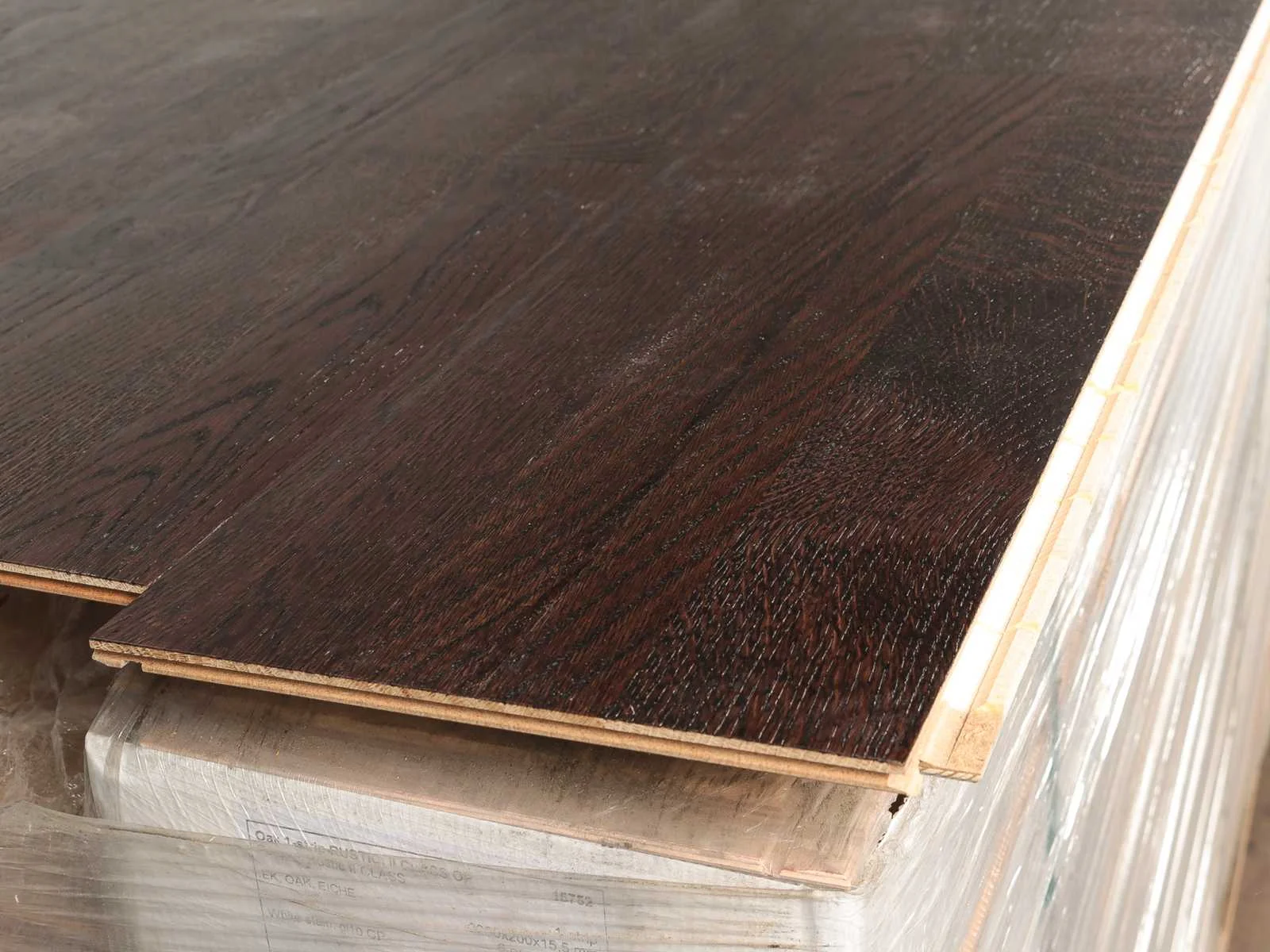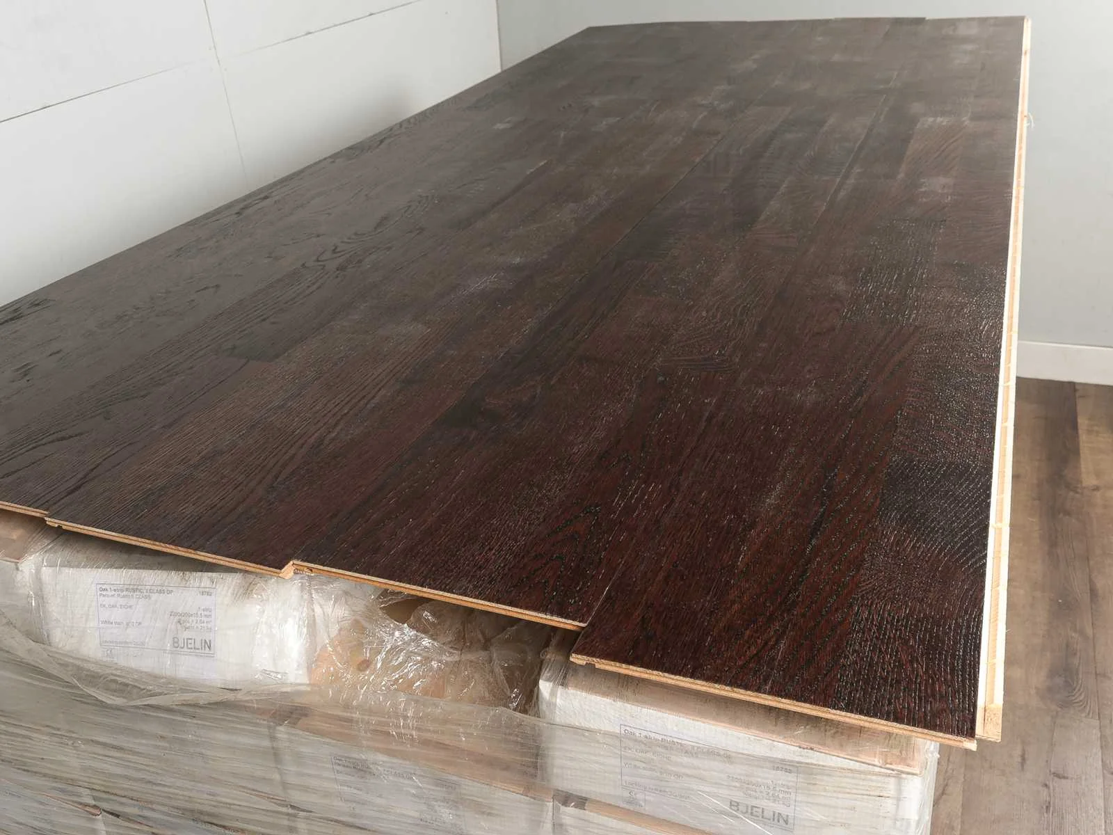 Gemakkelijk te leggen wegens 5G clicksysteem, geschikt voor alle soorten vloer en koelverwarmingen, kwaliteits parketvloer, vloer is van hoogwaardig Europees eiken hout, kant en klaar behandeld, dikte 14 mm, toplaag 3 mm, 25 pakken a 3,18 m2 Bezorgtermijn 14 dagen Merk: Ambiance Product type: Parket Oppervlakte: 79m² Geschikt voor vloerverwarming: Ja V-groef: Nee Afwerking: Mat gelakt, geborsteld, eiken toplaag Aantal m² per verpakking: 3.18m² Kleur: Brown oak 608 Gewicht: 625kg Lengte: 2200mm Breedte: 207mm Materiaal: Eiken multiplank