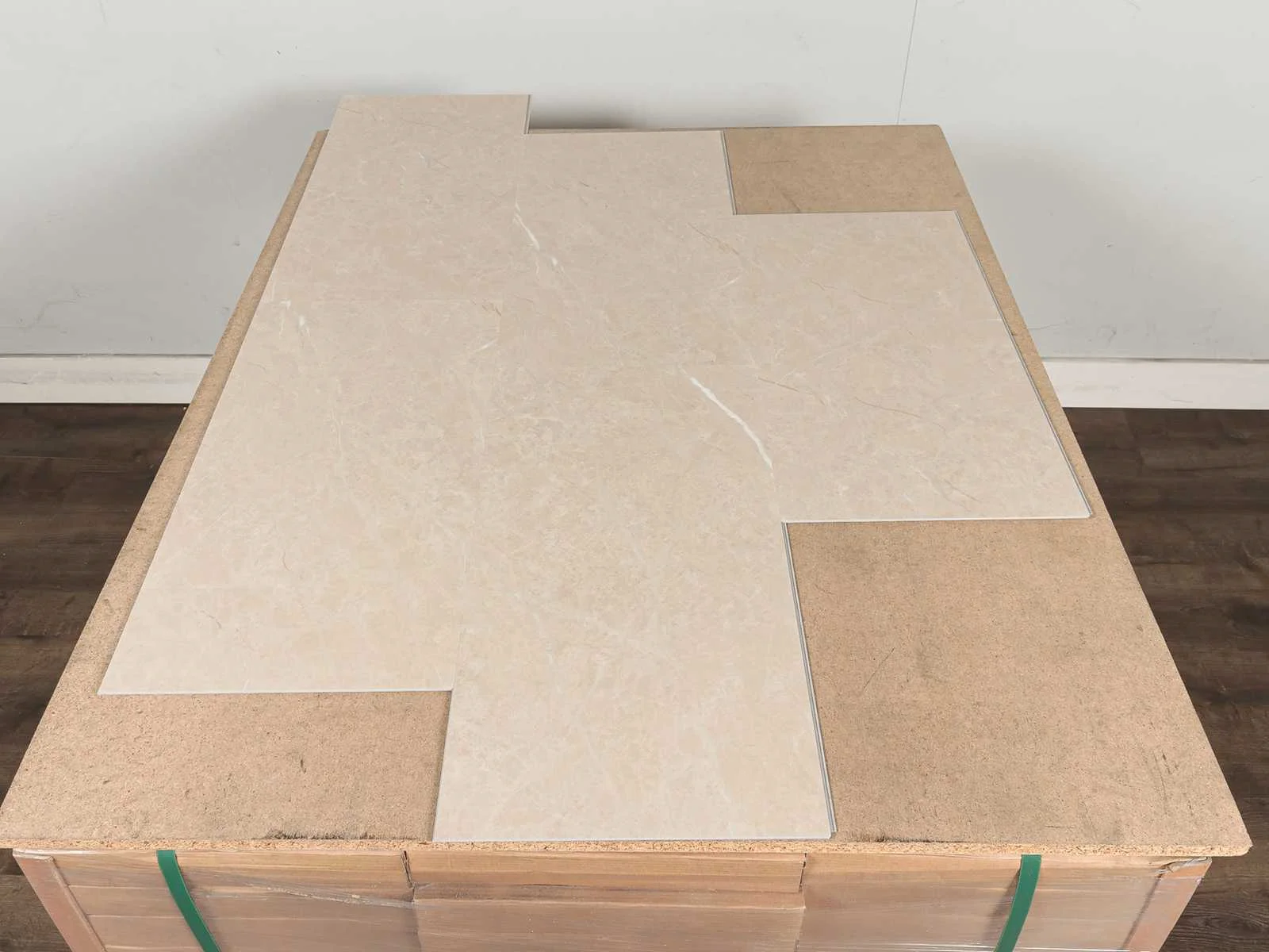 PVC click vloer, tegel formaat, water bestendig, vorstbestendig, ideaal voor vloerverwarming, kras en slijtvast, anti slip, 37 pakken a 2,047 m2 Bezorgtermijn 14 dagen Merk: Airial flooring Product type: PVC Oppervlakte: 75m² Geschikt voor vloerverwarming: Ja V-groef: Nee Afwerking: Voelbaar structuur, anti slip Aantal m² per verpakking: 2.047m² Kleur: Botti light 806ST Gewicht: 630kg Lengte: 610mm Breedte: 305mm Materiaal: PVC