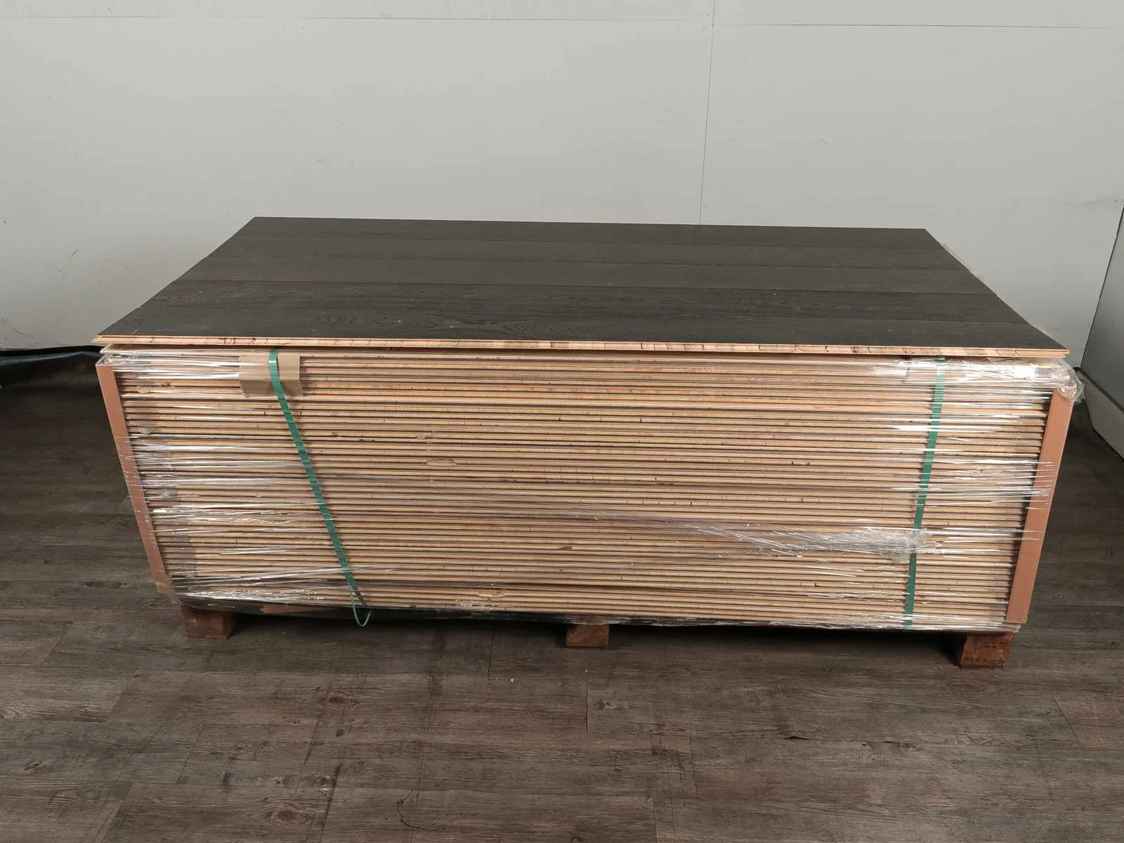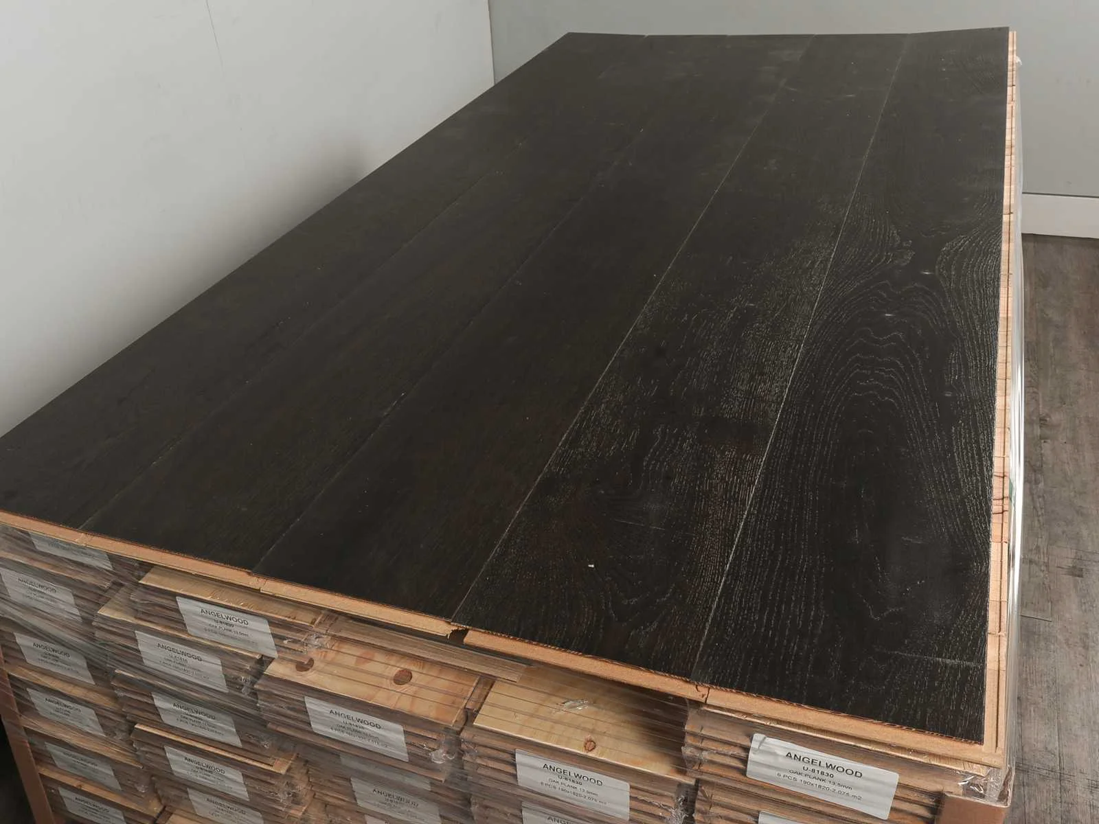 Gemakkelijk te leggen wegens clicksysteem, geschikt voor alle soorten vloer en koelverwarmingen, kwaliteits parketvloer, vloer is van hoogwaardig Europees eiken hout, kant en klaar behandeld, dikte 13,5 mm, toplaag 3 mm, 27 pakken a 2,075 m2 Bezorgtermijn 14 dagen Merk: Angelwood Product type: Parket Oppervlakte: 56m² Geschikt voor vloerverwarming: Ja V-groef: Ja Afwerking: Gelakt, geborsteld, met v-groef Aantal m² per verpakking: 2.075m² Kleur: Dark brown oak 838 Gewicht: 485kg Lengte: 1820mm Breedte: 190mm Materiaal: Eiken multiplank