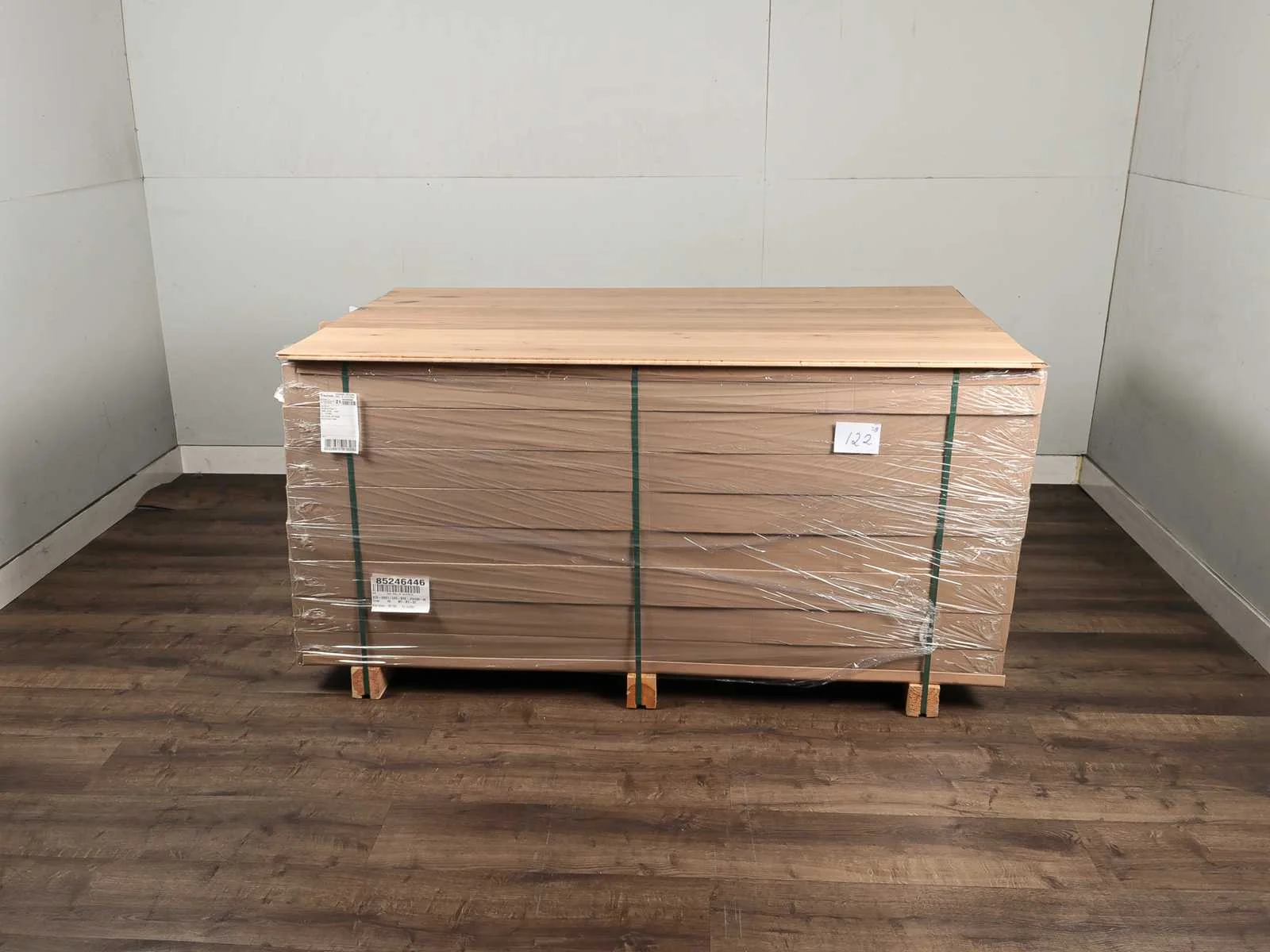 Gemakkelijk te leggen wegens 5G clicksysteem, geschikt voor alle soorten vloer en koelverwarmingen, kwaliteits parketvloer, vloer is van hoogwaardig Europees eiken hout, kant en klaar behandeld, dikte 14 mm, toplaag 3 mm, 39 pakken a 2,26 m2 Bezorgtermijn 14 dagen Merk: Ambiance Product type: Parket Oppervlakte: 88m² Geschikt voor vloerverwarming: Ja V-groef: Ja Afwerking: Mat wit gelakt, vlak afgewerkt, met v-groef Aantal m² per verpakking: 2.26m² Kleur: Trend mat white lacquer 006 Gewicht: 725kg Lengte: 1800mm Breedte: 180mm Materiaal: Eiken multiplank
