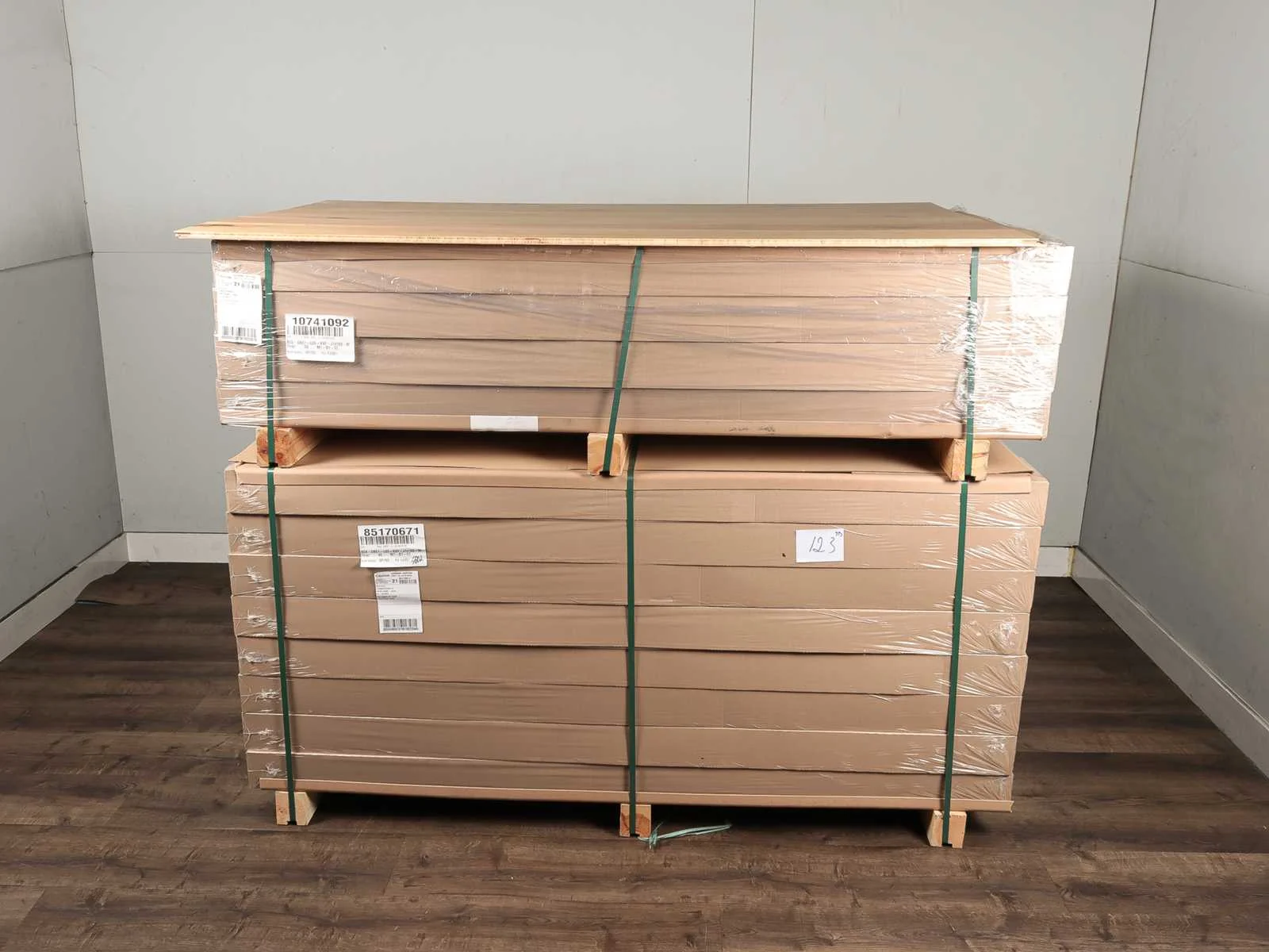 Gemakkelijk te leggen wegens 5G clicksysteem, geschikt voor alle soorten vloer en koelverwarmingen, kwaliteits parketvloer, vloer is van hoogwaardig Europees eiken hout, kant en klaar behandeld, dikte 14 mm, toplaag 3 mm, 59 pakken a 2,26 m2 Bezorgtermijn 14 dagen Merk: Ambiance Product type: Parket Oppervlakte: 133m² Geschikt voor vloerverwarming: Ja V-groef: Ja Afwerking: Mat gelakt, vlak afgewerkt, met v-groef Aantal m² per verpakking: 2.26m² Kleur: Shiney oak trend 349 Gewicht: 1090kg Lengte: 1800mm Breedte: 180mm Materiaal: Eiken multiplank