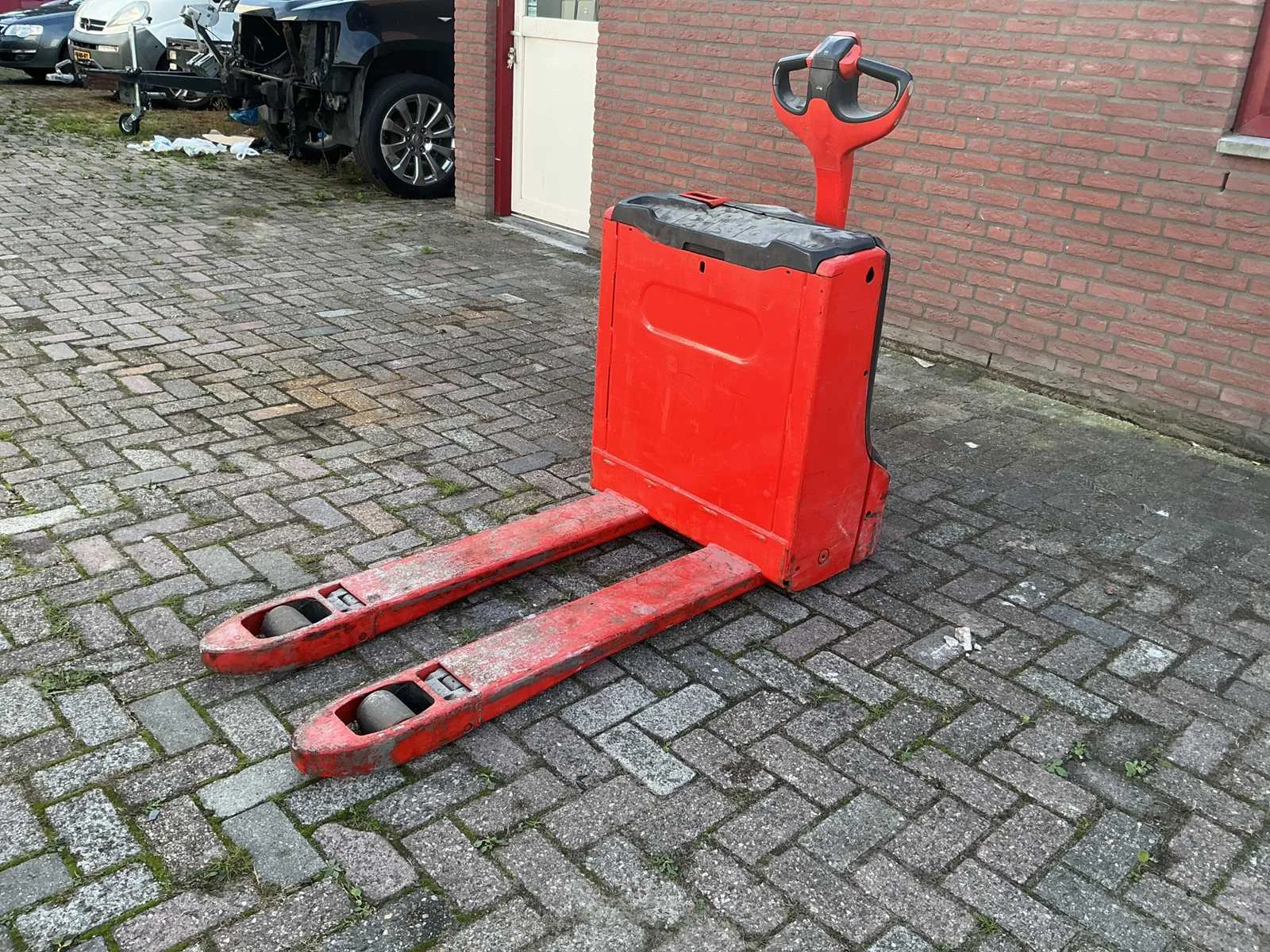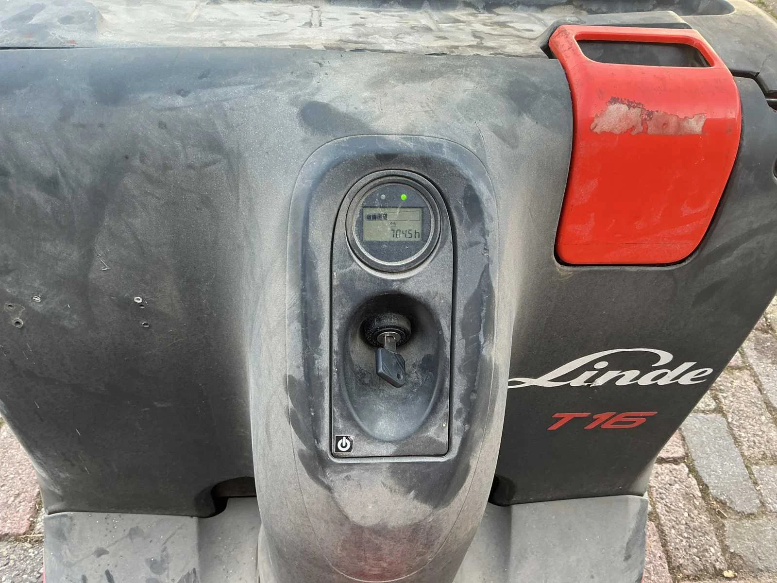 Werking getest Max hefhoogte 220 Merk: Linde Type: T16 Hefvermogen: 1250kg Lepellengte: 115mm Accu lader: true Afgelezen urenstand: 704 Totale afmeting L: 150mm Totale afmeting Breedte: 75mm Totale afmeting Hoogte: 130mm